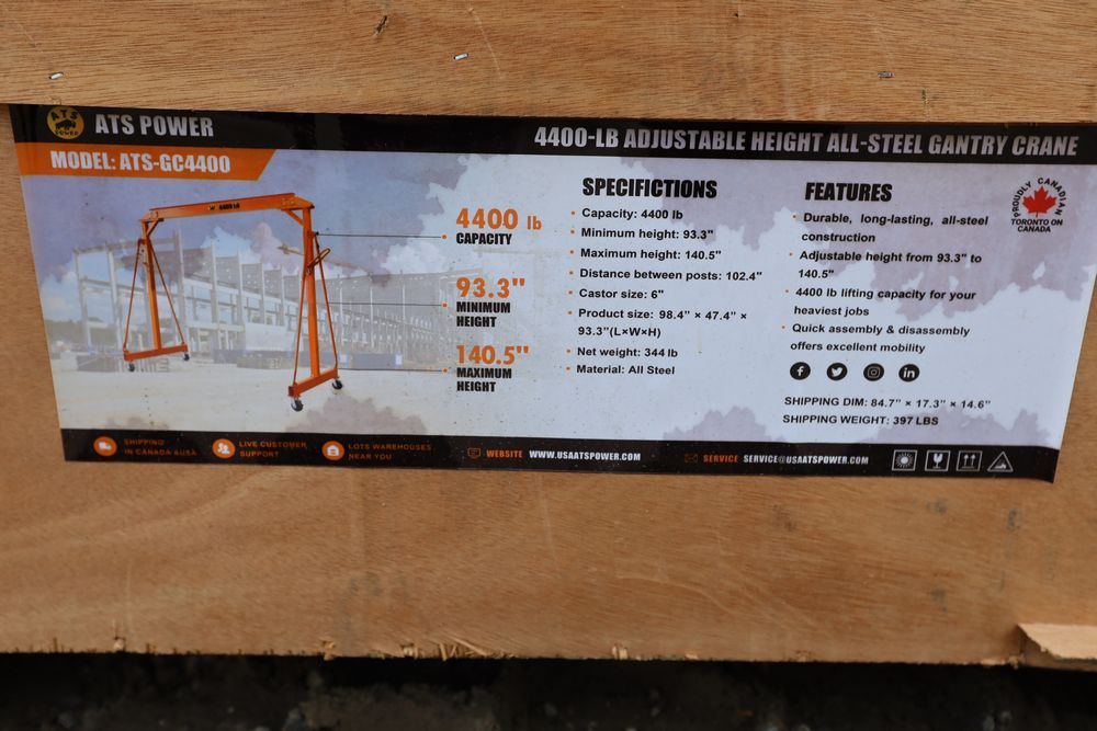 New 2026 Landhonor adjustable height All-Steel Gantry Crane with 4400lbs Capacity Model LHR-GC2200.