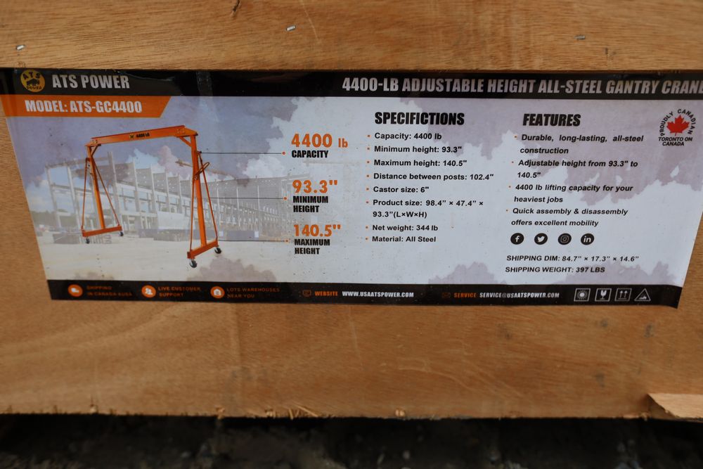 New 2026 Landhonor adjustable height All-Steel Gantry Crane with 4400lbs Capacity Model LHR-GC2200.