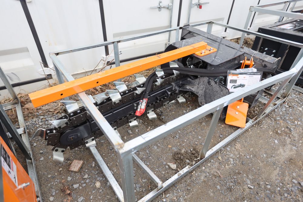 New 2025 Wolverine Skid Steer Trencher attachment model TCR-12-48H, trenching width 8", depth 48", clearing auger dia 15".