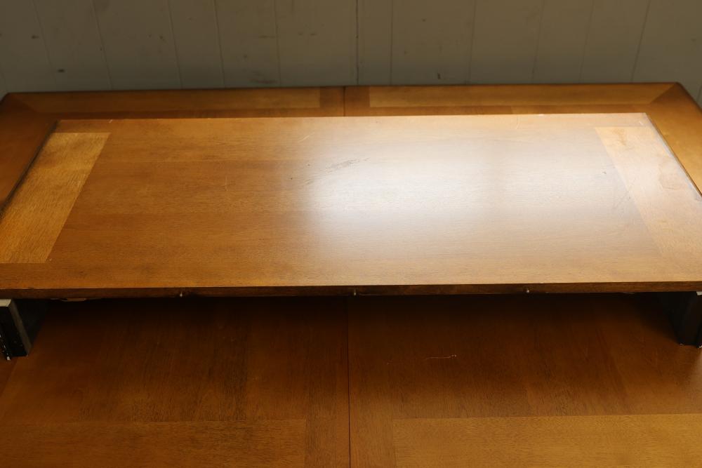 Ashley Furniture D423-35 Alison Hall Rectangular Expandable Dining Table With Leaf. Features a solid wood construction with turned legs. This table measures approximately 30 inches high, 60 inches wide, and 42 inches deep. The leaf extension measures 18 inches wide. Pickup only.