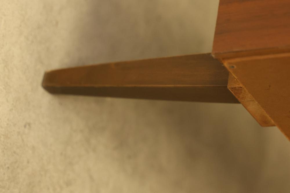 Mid-Century Modern Cabinet and Mid-Century Modern Three-Drawer Dresser. Mid-century modern cabinet features a dark wood front with nine drawers and brass pulls, and measures approximately 30.5 inches high, 60.5 inches wide, and 17.5 inches deep. Mid-century modern three-drawer dresser features a dark wood front and brass pulls, and measures approximately 30.5 inches high, 30.25 inches wide, and 17.5 inches deep. Pickup only.