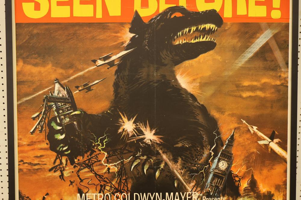 Framed Three-Sheet Vintage Gorgo Movie Poster Print. Measures 79.5 inches long, 41.5 inches wide. Includes some hardware on the back of the poster. Pickup only.