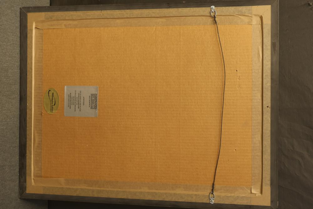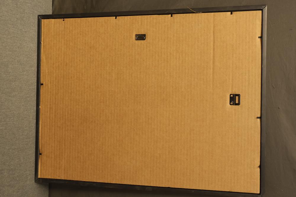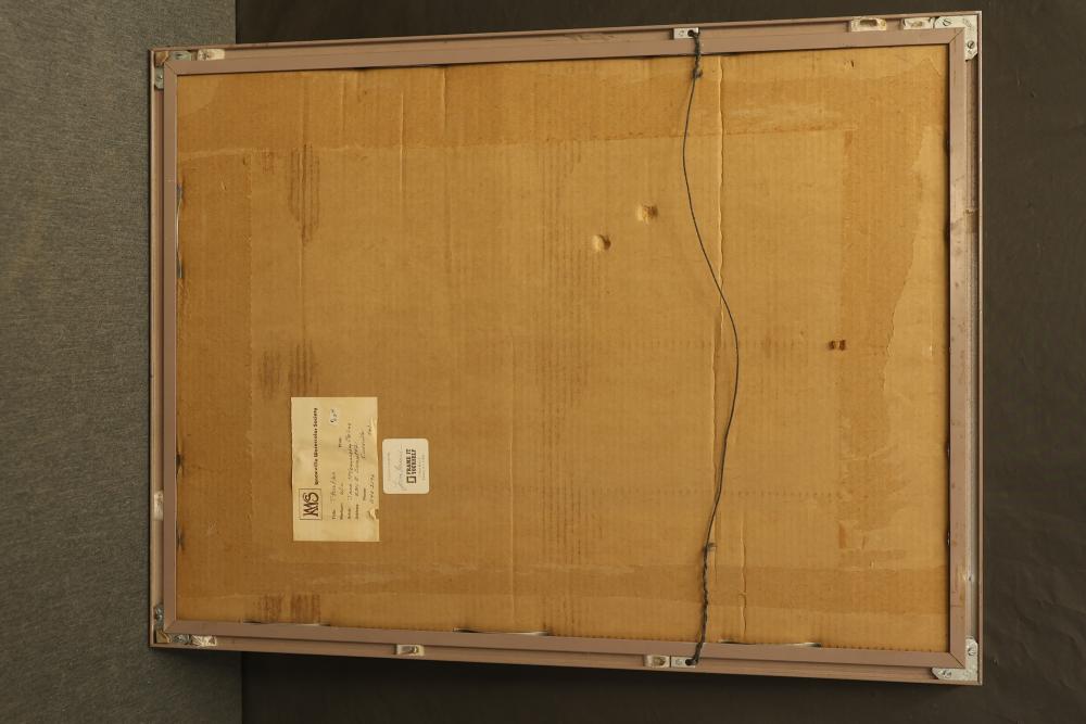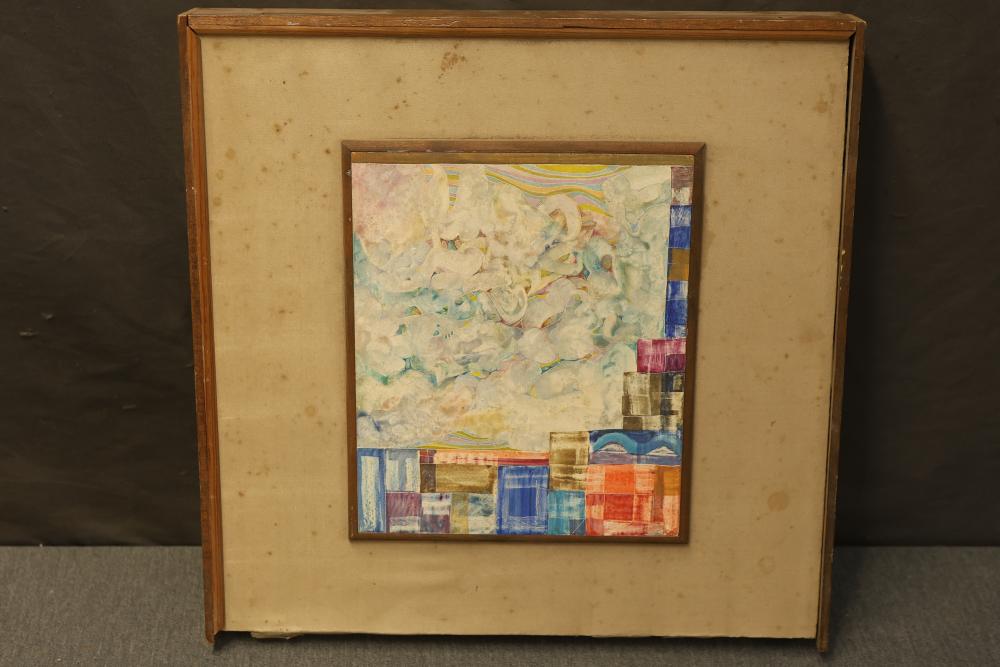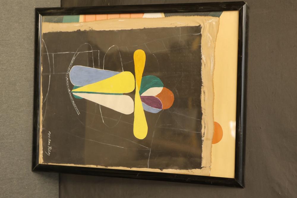 12 artwork pieces by different artists in varied mediums, including a framed print of "Acrobat" by Man Ray, watercolors such as "Frances P. Mesquita 1905" by Allen Hawkes and "Thistles" by Jane McConnaughey Boling, and "Double Waterfall," an oil on board signed as Lipman. Pieces range in size from approximately 36.25 inches long x 24.25 inches wide to approximately 14.5 inches long x 12.5 inches wide. Pickup only.