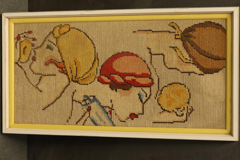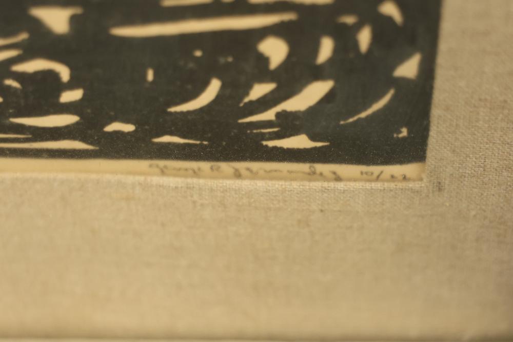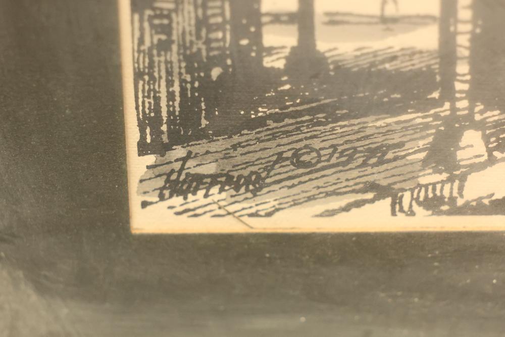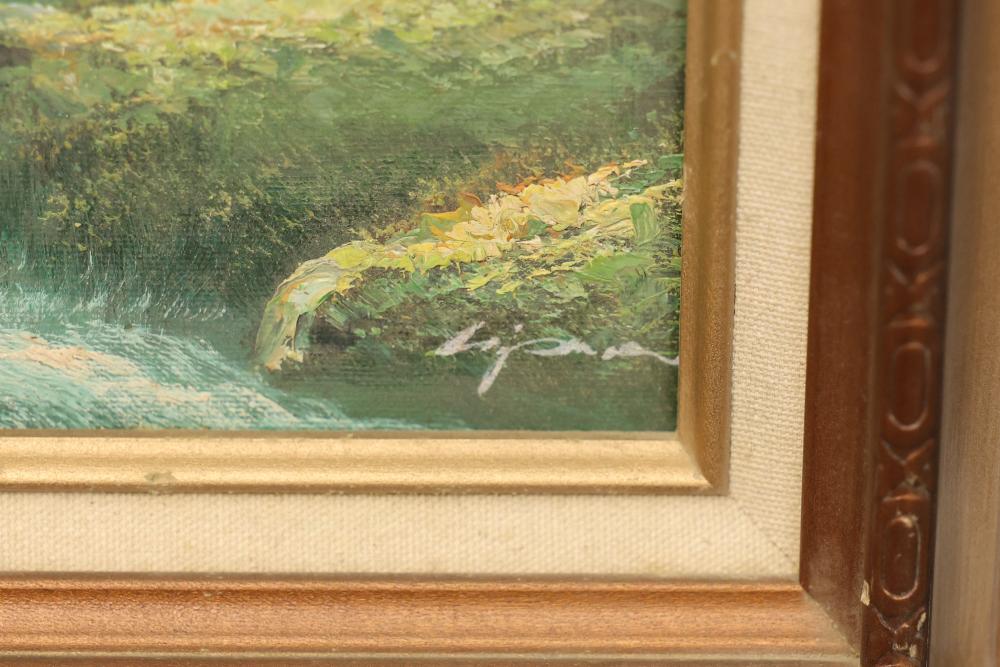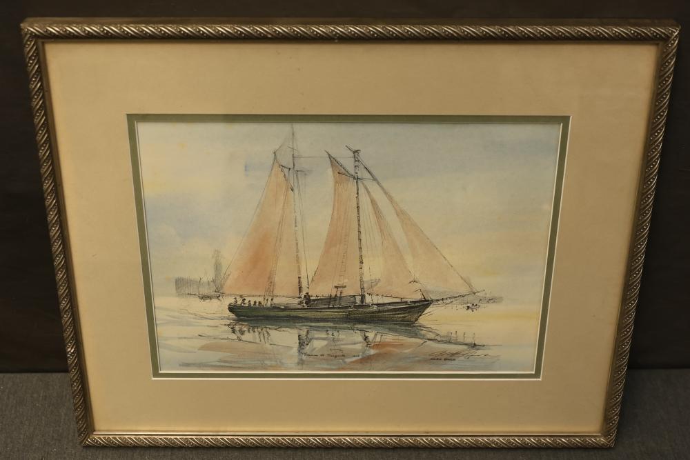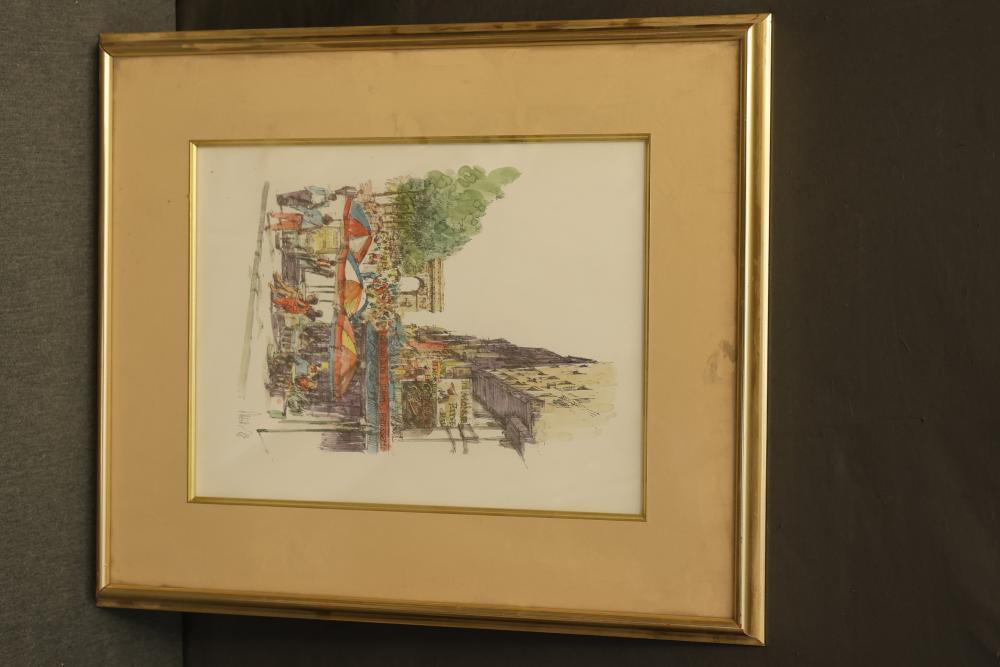 12 artwork pieces by different artists in varied mediums, including a framed print of "Acrobat" by Man Ray, watercolors such as "Frances P. Mesquita 1905" by Allen Hawkes and "Thistles" by Jane McConnaughey Boling, and "Double Waterfall," an oil on board signed as Lipman. Pieces range in size from approximately 36.25 inches long x 24.25 inches wide to approximately 14.5 inches long x 12.5 inches wide. Pickup only.