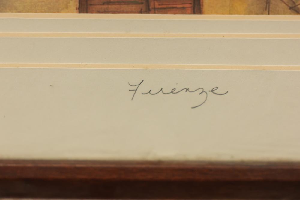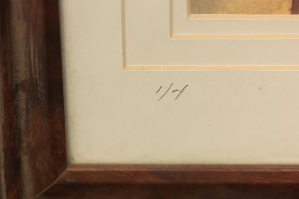 Limited edition print titled "Ferinze" by Drnia Higgins. Numbered in the lower left corner as "1/4" and signed in the lower right corner. The piece measures approximately 15 inches long by 12 inches wide and is presented in a wooden frame with a wire backing. Pickup only.