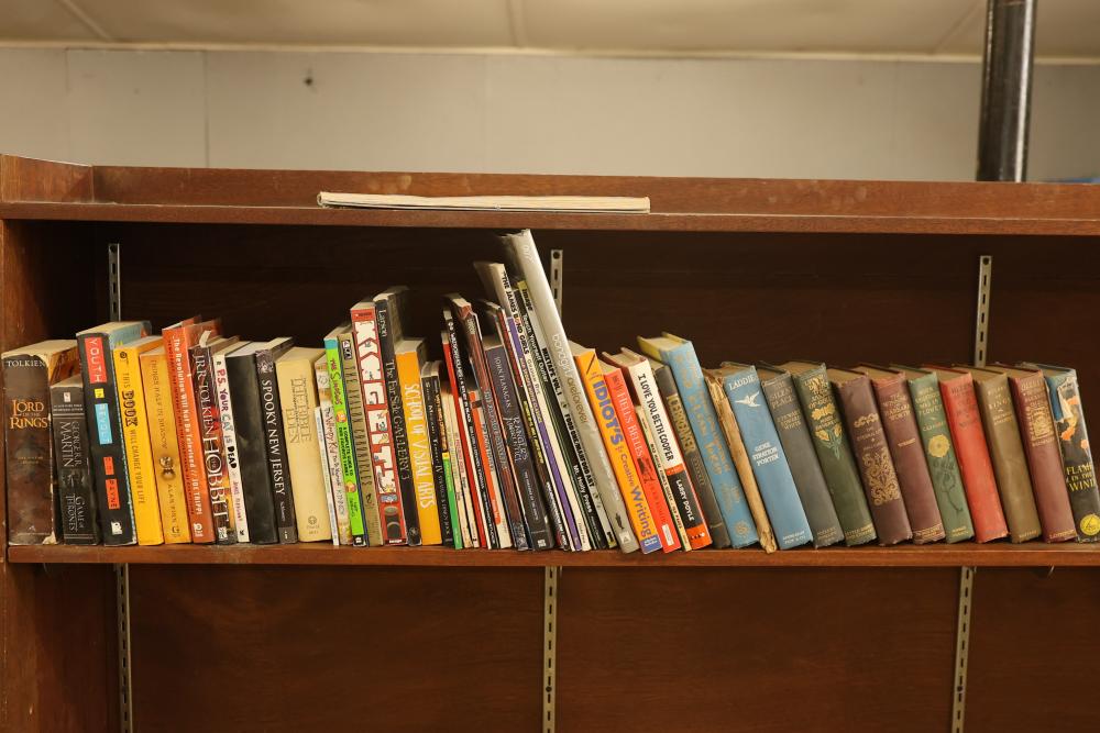 Books and Graphic Novels by Tolkien, Martin, Larson, Wright, and Devereaux, featuring titles such as The Lord of the Rings, A Game of Thrones, and works from various genres. Includes older hardcover editions and modern paperbacks. Pickup only.