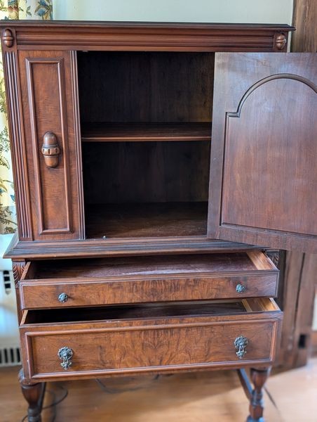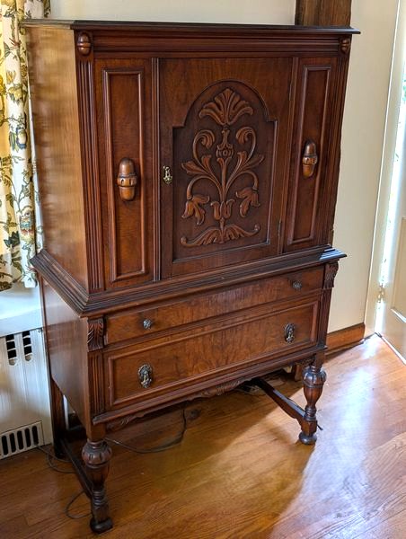 Items include Union-Made light wood bedroom set; CW Pottie shadow box; green ammunitions chest; antique hand-crafted Westmoreland milk glass; antique highboy hutch; vintage/antique pipe holders; vintage Bentwood rocker; antique icebox; vintage Royal typewriters; Ariens snow thrower; Atwater Kent antique radio; Sonora antique radio cabinet; Victor victrola; vintage/antique books: child's prayer book & Annals of America series; Dixie Dogwood Blue Ridge Southern antique dish set; stone/sculpture/fountain; antique trunks; religious art; Hamilton Beach slow cooker; Rosti Mepal mixing bowls & more. Items are located in Avon, CT.