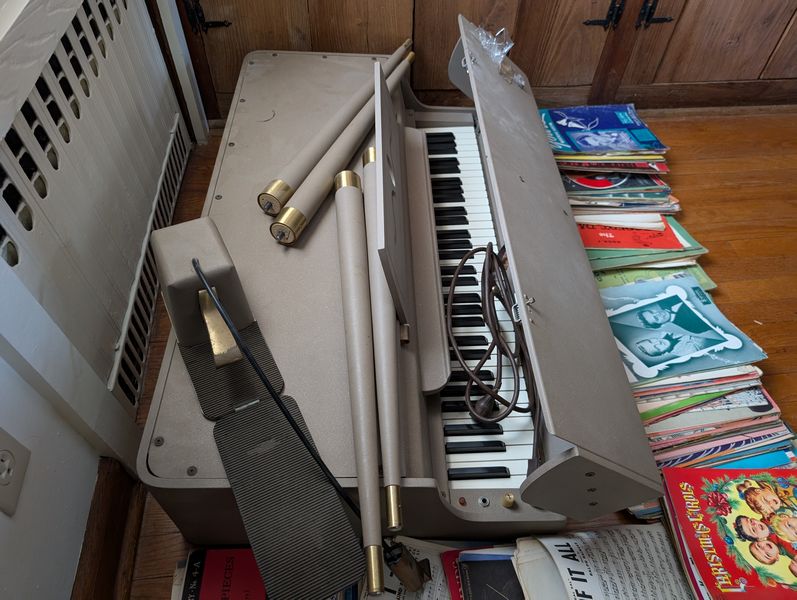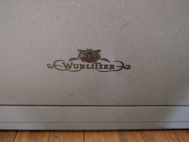 Wurlitzer Electric Organ. Vintage Wurlitzer electric organ, 39"Wx22.5"Dx24.5"H with removable legs & music books. See photos for details and cond.