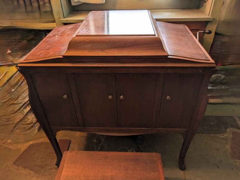 Items include Union-Made light wood bedroom set; CW Pottie shadow box; green ammunitions chest; antique hand-crafted Westmoreland milk glass; antique highboy hutch; vintage/antique pipe holders; vintage Bentwood rocker; antique icebox; vintage Royal typewriters; Ariens snow thrower; Atwater Kent antique radio; Sonora antique radio cabinet; Victor victrola; vintage/antique books: child's prayer book & Annals of America series; Dixie Dogwood Blue Ridge Southern antique dish set; stone/sculpture/fountain; antique trunks; religious art; Hamilton Beach slow cooker; Rosti Mepal mixing bowls & more. Items are located in Avon, CT.