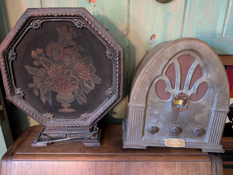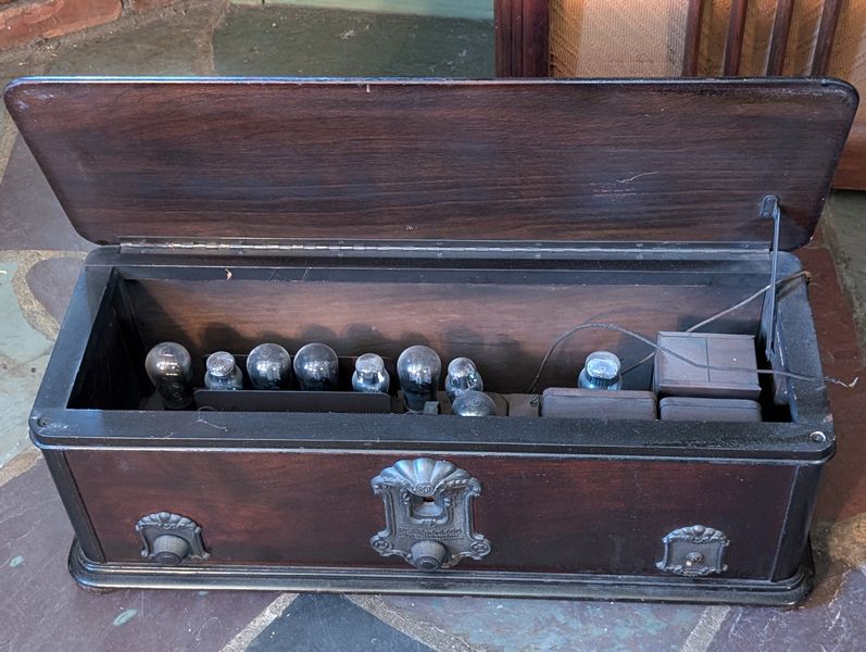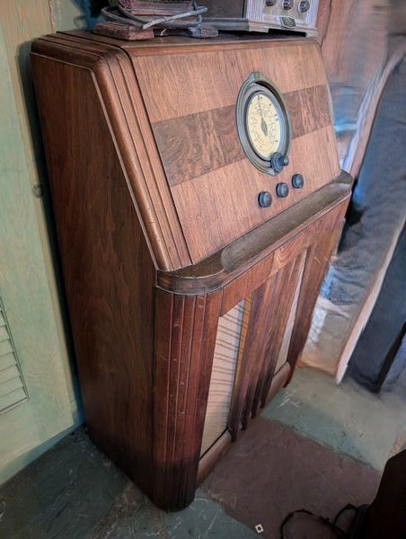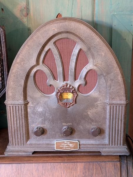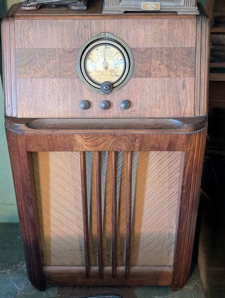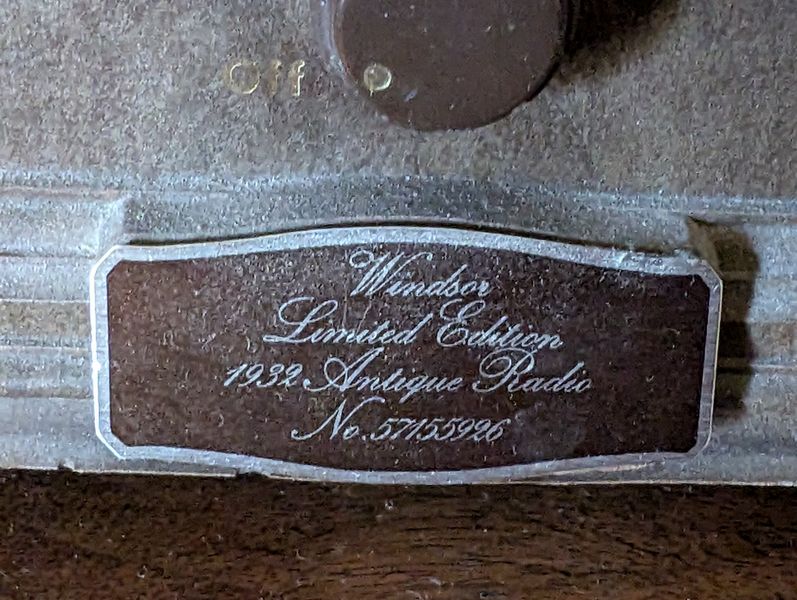 Antique Radios and Speaker. Incl: RCA 60, 28.5"Wx10"Dx10"H; Philco radio, 25"Wx13"Dx41"H; RCS Tapestry speaker, 13"Wx15"H; Windsor 1932 limited edition; other related items as seen in photos.