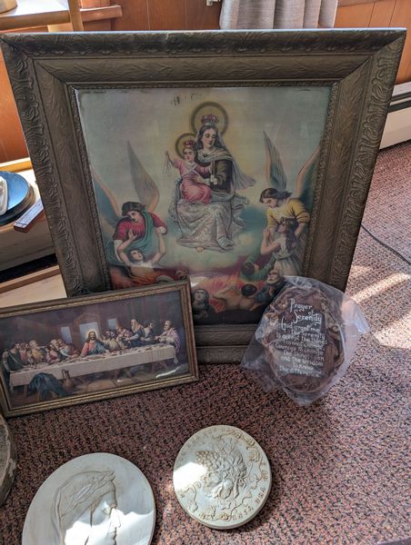 Formal Décor and Religious Art, featuring John Rogers. Incl: statues, incl John Roger's large sculpture & book; Missals; religious art. See photos for details. Loc on 2nd fl.