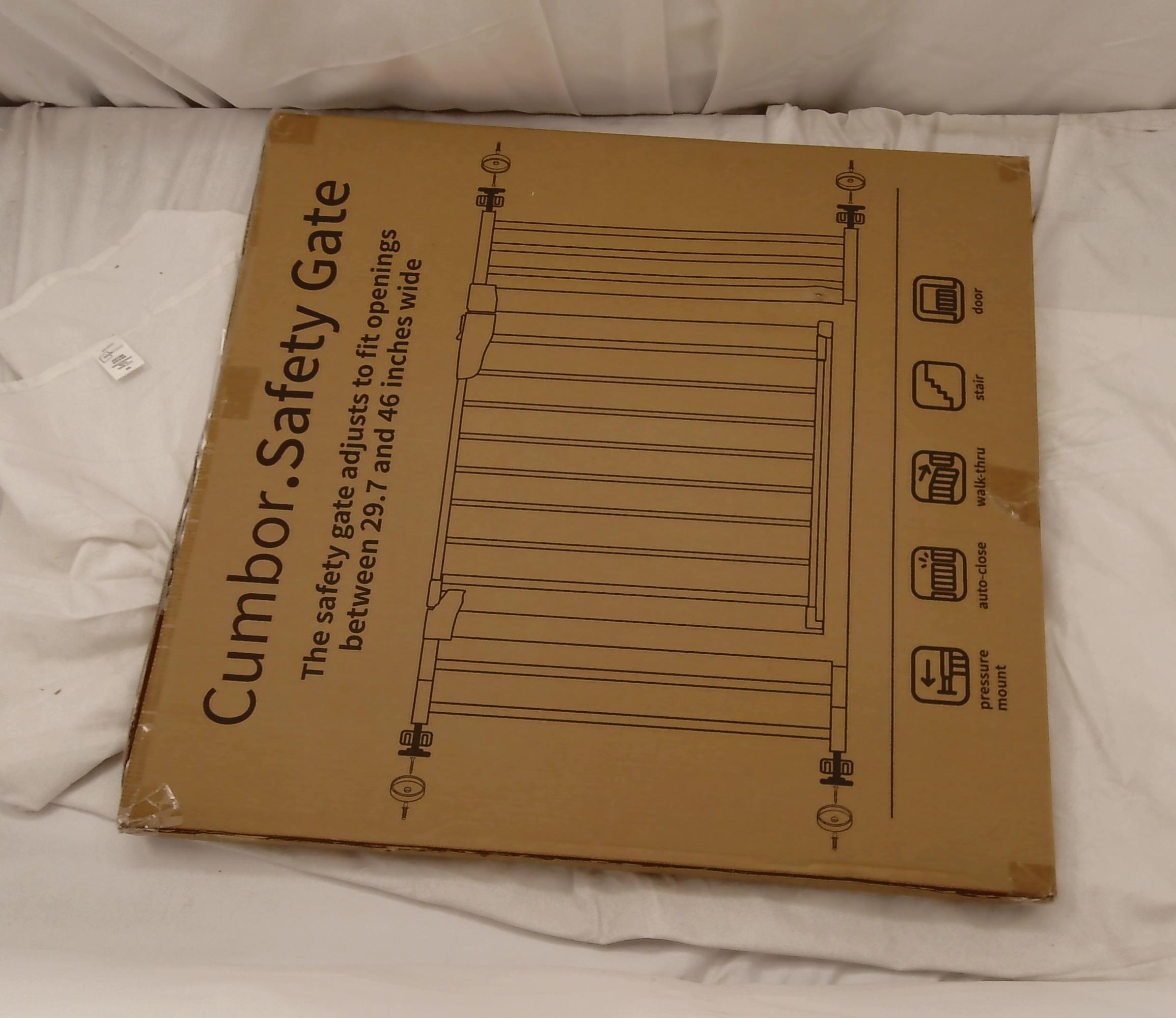 Cumbor 29.7-46" Baby Gate for Stairs, Toddler Safety Essentials for The House, Auto Close Dog Gate for Doorways, Mom's Choice Awards Winner-Easy Install Pressure Mounted Pet Gates for Dogs, White