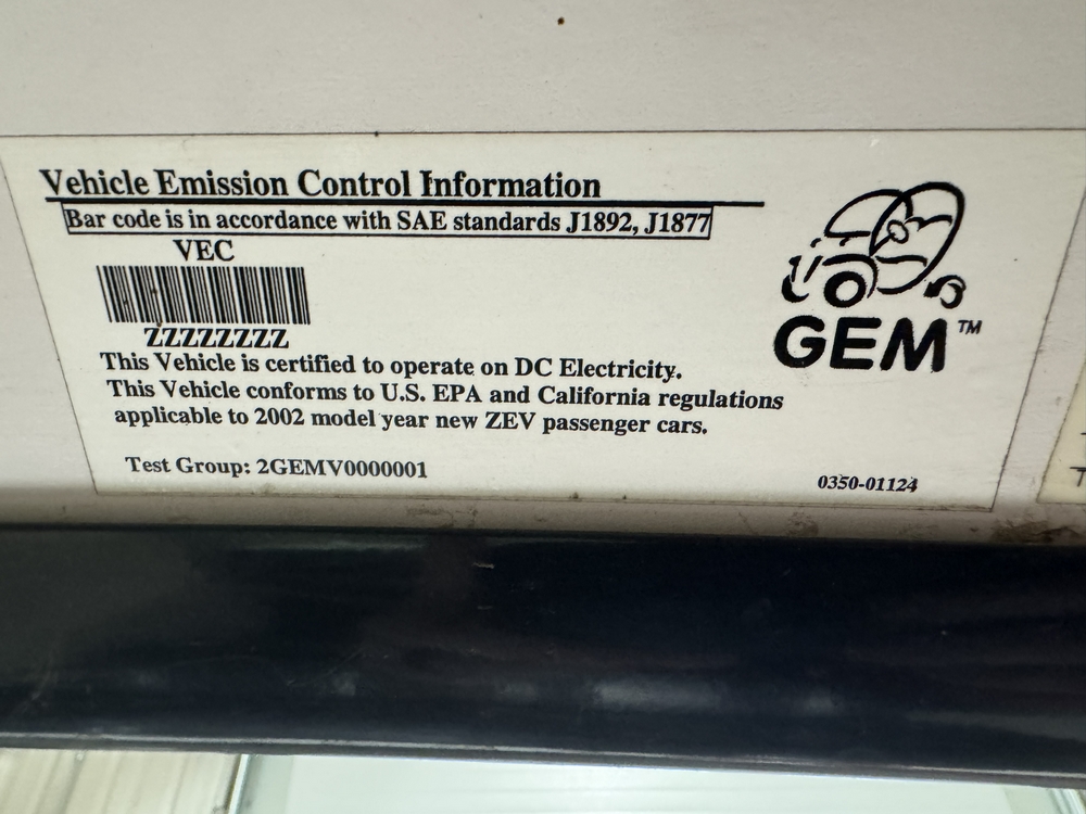 2002 G.E.M Electric Car; Used condition, seller reports the vehicle does not run and needs batteries, No Title, sold for parts. No loading assistance on site, bring assistance as necessary.