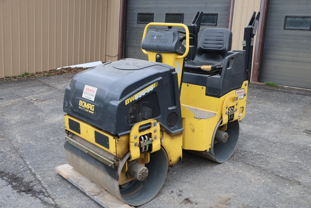 2011 Bomag BW900 50 tandem roller, serial number 881834071076, Honda engine, open operator station with seat and control panel, dual steel drums. Runs and operates.