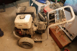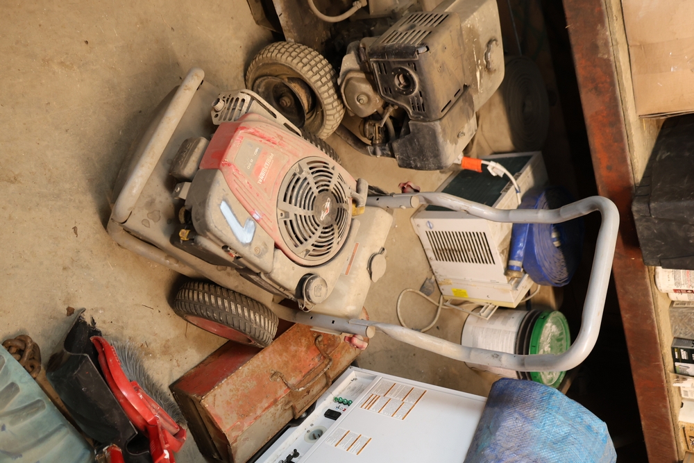 Briggs and Stratton professional series pressure washer with 190cc engine, 8.50 ft lbs gross torque rating, wheeled frame with handle. Seller reports: Ran when stored, needs TLC.