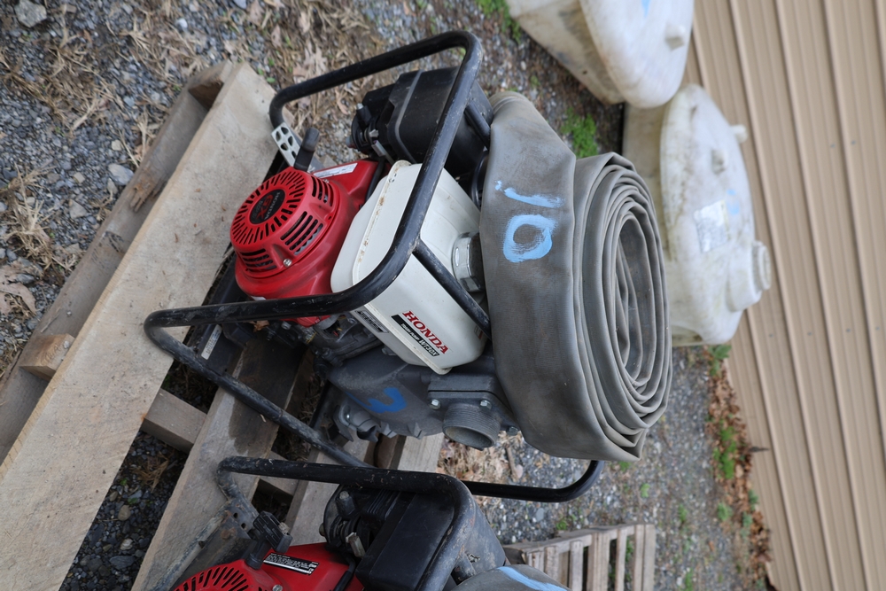 Honda WT30X trash pump, mounted in protective frame with one rolled hose attached. Seller reports: In working condition.