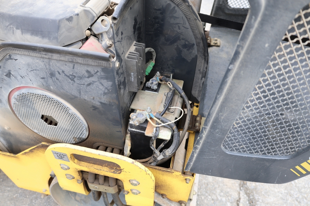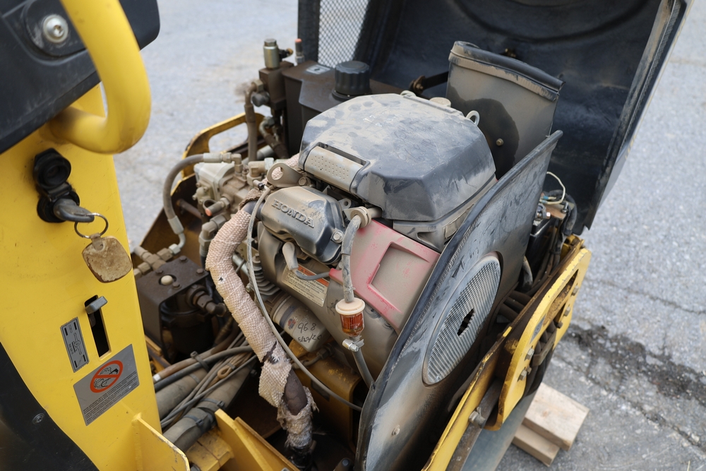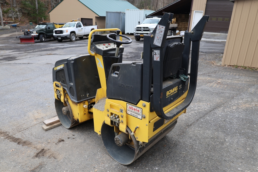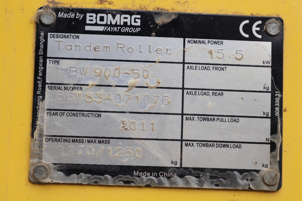 2011 Bomag BW900 50 tandem roller, serial number 881834071076, Honda engine, open operator station with seat and control panel, dual steel drums. Runs and operates.