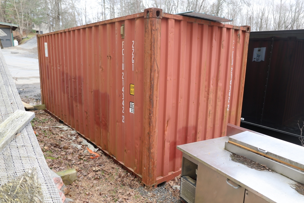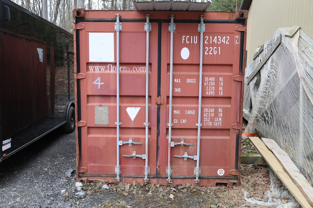 2005 20' shipping container, container number FCIU 214342 2, double door end, interior metal walls and wood floor. Excludes contents.