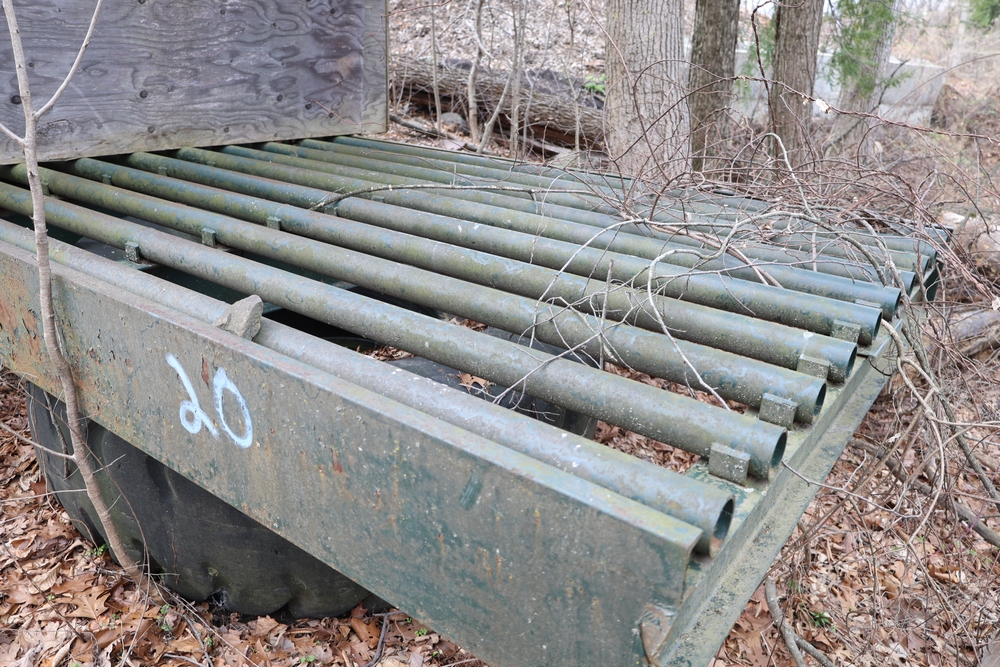 Steel cattle guard section with tubular bar top, approximately 16 ft long x 82 in wide.