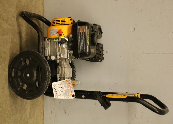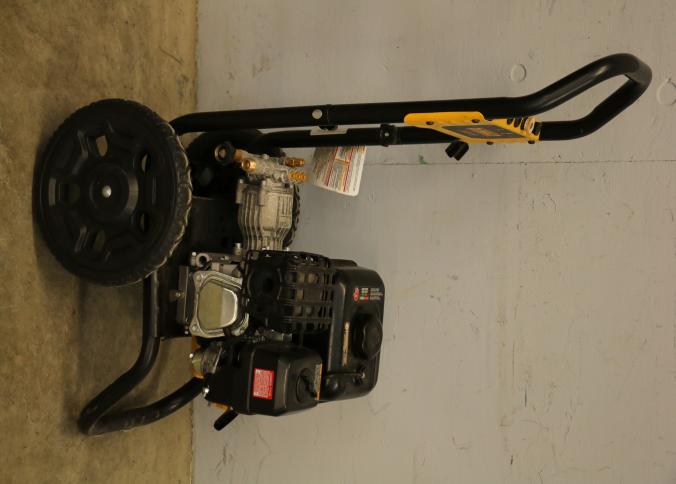 DeWalt 3100 PSI Gas Pressure Washer Model DXPW61403-S. Features a cold water gas pressure system with a rated 2.3 GPM flow. Includes durable wheels and built-in storage for accessories. Unit does not have compression and does not start. Pickup only.
