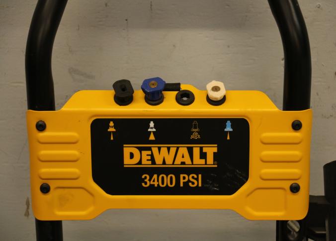 DeWalt DXPW61372 Cold Water Gas Pressure Washer, 3400 PSI. Powered by a gas engine, this pressure washer is rated for 2.5 GPM (gallons per minute) and 3400 PSI (pounds per square inch) for outdoor use. Features a durable frame with wheels for enhanced mobility. Hardware not included. Unit does not have compression and does not start. Pickup only.