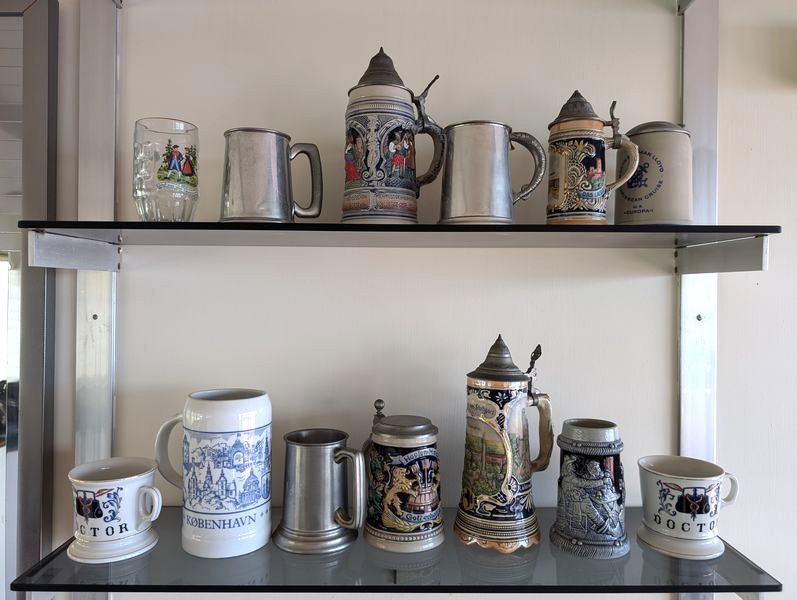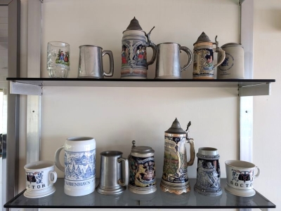 Beer Steins, Authentic Germany. Thirteen mugs and steins, some German-see photos. Tallest, 10"H.