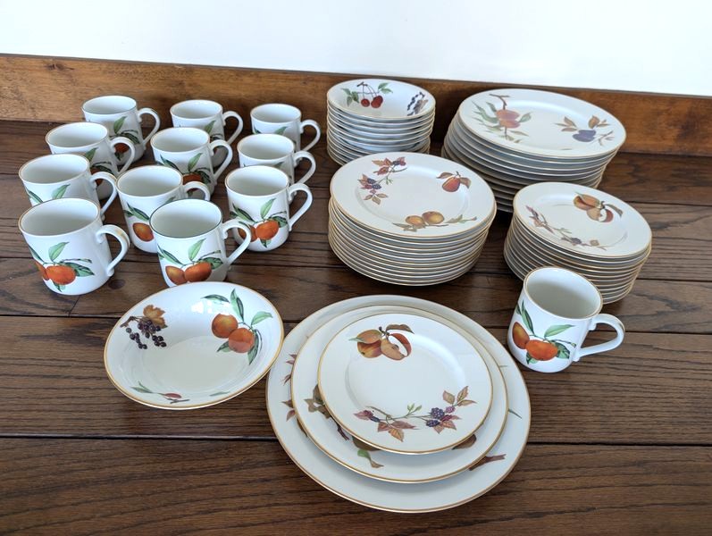 Evesham Dish Set. Evesham Royal Worcester complete dish set, 5-piece, service of 12 with 10"diameter dinner plate. See photos for details. Matches ent pieces in lot #14.