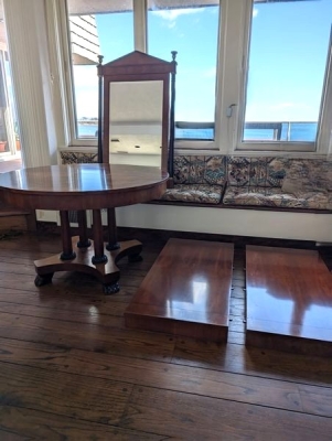 Items include fishing & boating equipment; Kingman teak outdoor furniture; blue leather saucer chair; Surdiac coal stove; Harman/Kardon 730 receiver; Technics turntable; Denon CD player; Sennheiser headphones; pool table/cues/balls; Asian-style canopy bed; Revolutionary & other military uniforms; authentic German beer steins; electric propane fireplace; Asian-style dresser; Liz Claiborne dress; Ugg handbag; Oggi coffee carafe; pipes with wood pipe stands; biking/sporting equipment; Grandfather clock; wine rack/bartender's tools/stemware; Evesham Royal Worcester entertaining pieces; contemporary black lacquer coffee table & more. Items are located in Mystic, CT.