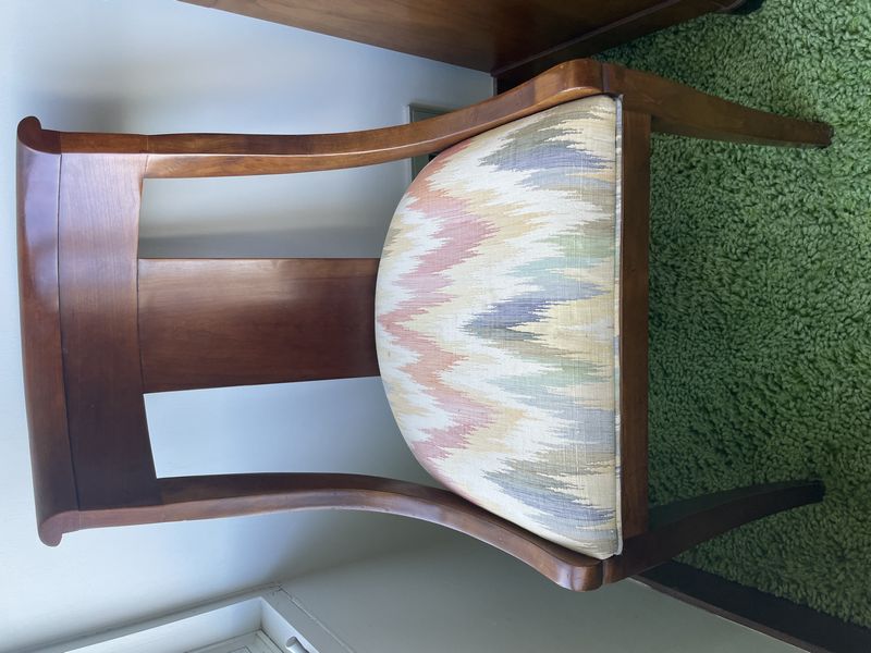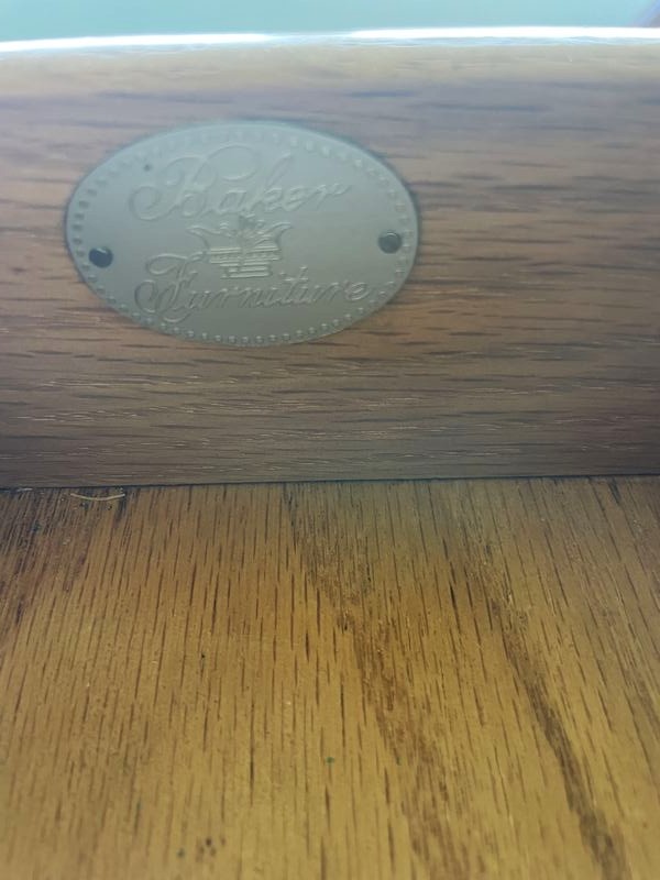 Baker Dresser/Sideboard, Chair, Décor. Baker sideboard (may be used as a dresser); vintage wood chair with upholstered seat; table lamp with shade; décor. Located on the second floor.