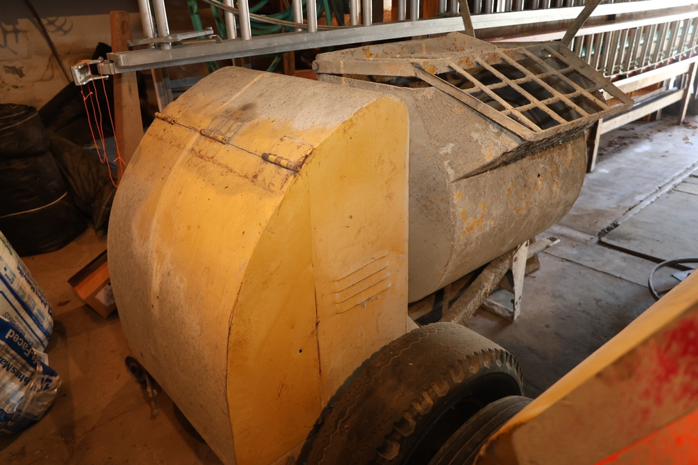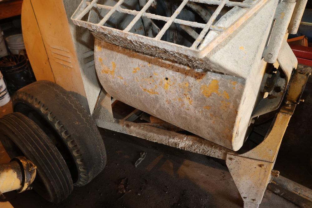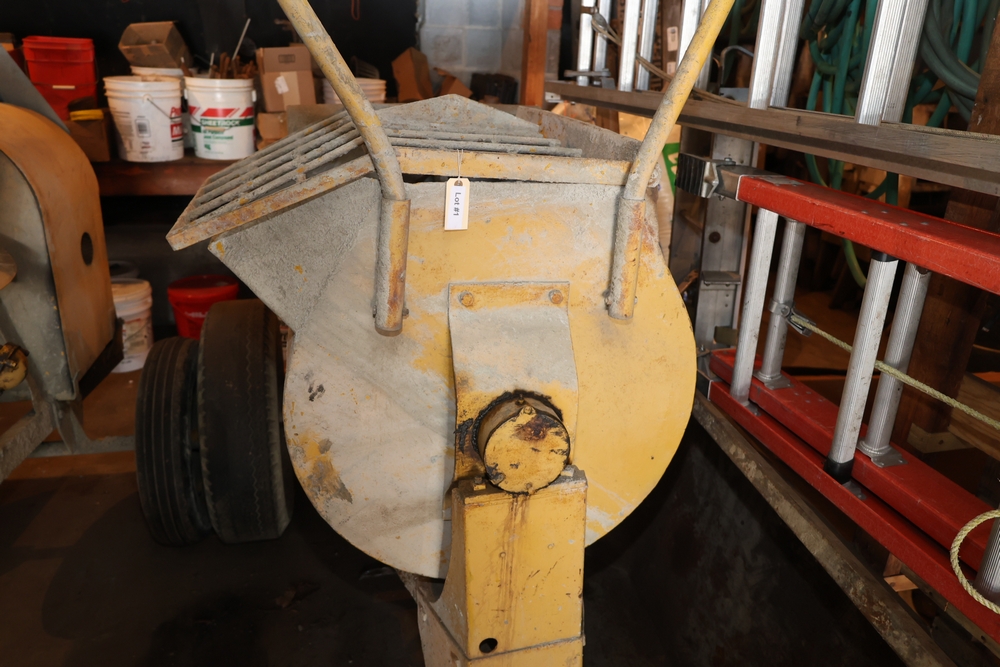 Liquidation of a general contracting company. Items include towable motor mixer; Muller power trowell steel cable rolls; live edge wood slabs/boards; Mutoh drafting machine; rolls orange plastic safety fencing; Skil 1/2" drill model 351 drill press; primed cedar siding; C. B. Nelson Co. "Cost Cutter" saw table; concrete chutes; steel scaffold wall brackets; two-wheeled material dollies; concrete curing blankets; ladder jacks; Universal portable propane convection heater; wood frame storage shed; Miller Ready Roofer fall protection kit; PVC sewer/drain fittings; dimensional lumbar boards; scaffold screw jacks; Karnak roofing/foundation coatings & much more. Items are located in Pawling, NY.