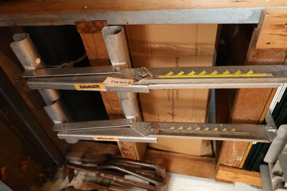 Liquidation of a general contracting company. Items include towable motor mixer; Muller power trowell steel cable rolls; live edge wood slabs/boards; Mutoh drafting machine; rolls orange plastic safety fencing; Skil 1/2" drill model 351 drill press; primed cedar siding; C. B. Nelson Co. "Cost Cutter" saw table; concrete chutes; steel scaffold wall brackets; two-wheeled material dollies; concrete curing blankets; ladder jacks; Universal portable propane convection heater; wood frame storage shed; Miller Ready Roofer fall protection kit; PVC sewer/drain fittings; dimensional lumbar boards; scaffold screw jacks; Karnak roofing/foundation coatings & much more. Items are located in Pawling, NY.