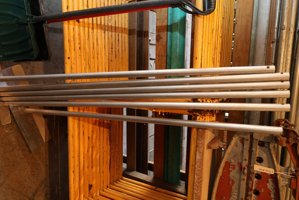 Liquidation of a general contracting company. Items include towable motor mixer; Muller power trowell steel cable rolls; live edge wood slabs/boards; Mutoh drafting machine; rolls orange plastic safety fencing; Skil 1/2" drill model 351 drill press; primed cedar siding; C. B. Nelson Co. "Cost Cutter" saw table; concrete chutes; steel scaffold wall brackets; two-wheeled material dollies; concrete curing blankets; ladder jacks; Universal portable propane convection heater; wood frame storage shed; Miller Ready Roofer fall protection kit; PVC sewer/drain fittings; dimensional lumbar boards; scaffold screw jacks; Karnak roofing/foundation coatings & much more. Items are located in Pawling, NY.