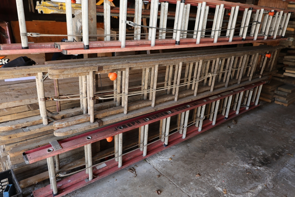 Liquidation of a general contracting company. Items include towable motor mixer; Muller power trowell steel cable rolls; live edge wood slabs/boards; Mutoh drafting machine; rolls orange plastic safety fencing; Skil 1/2" drill model 351 drill press; primed cedar siding; C. B. Nelson Co. "Cost Cutter" saw table; concrete chutes; steel scaffold wall brackets; two-wheeled material dollies; concrete curing blankets; ladder jacks; Universal portable propane convection heater; wood frame storage shed; Miller Ready Roofer fall protection kit; PVC sewer/drain fittings; dimensional lumbar boards; scaffold screw jacks; Karnak roofing/foundation coatings & much more. Items are located in Pawling, NY.