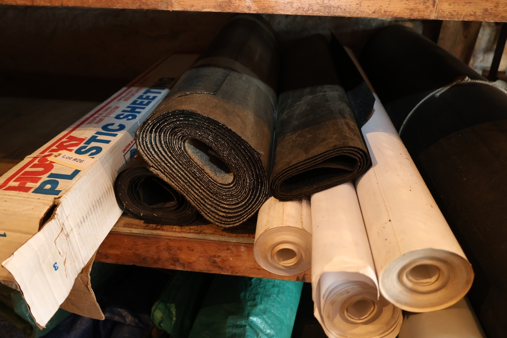 Liquidation of a general contracting company. Items include towable motor mixer; Muller power trowell steel cable rolls; live edge wood slabs/boards; Mutoh drafting machine; rolls orange plastic safety fencing; Skil 1/2" drill model 351 drill press; primed cedar siding; C. B. Nelson Co. "Cost Cutter" saw table; concrete chutes; steel scaffold wall brackets; two-wheeled material dollies; concrete curing blankets; ladder jacks; Universal portable propane convection heater; wood frame storage shed; Miller Ready Roofer fall protection kit; PVC sewer/drain fittings; dimensional lumbar boards; scaffold screw jacks; Karnak roofing/foundation coatings & much more. Items are located in Pawling, NY.