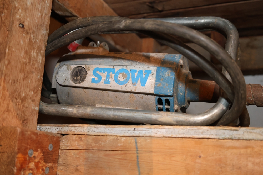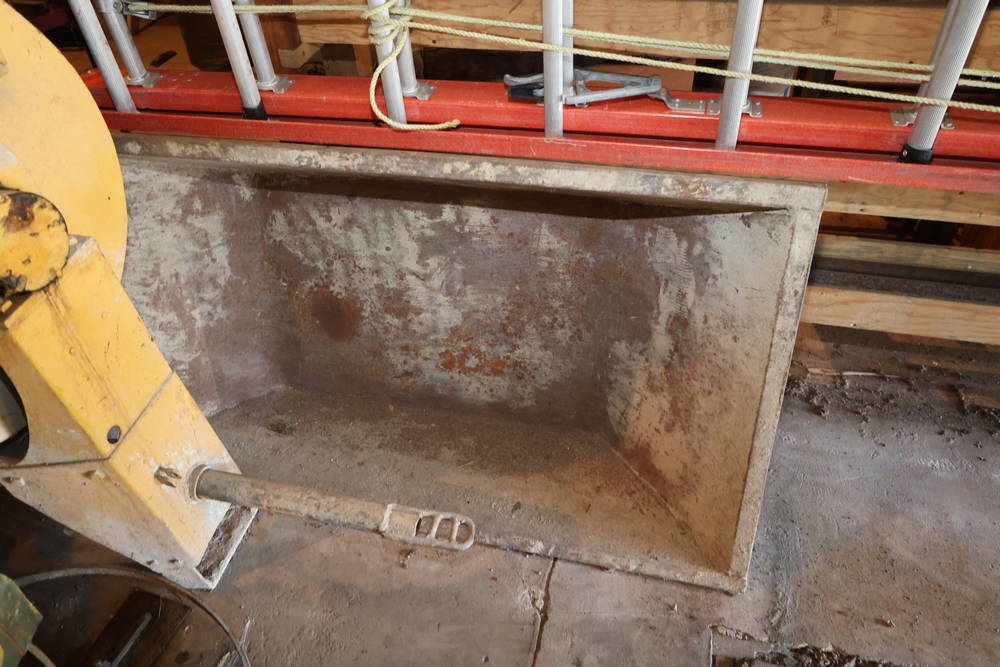 Liquidation of a general contracting company. Items include towable motor mixer; Muller power trowell steel cable rolls; live edge wood slabs/boards; Mutoh drafting machine; rolls orange plastic safety fencing; Skil 1/2" drill model 351 drill press; primed cedar siding; C. B. Nelson Co. "Cost Cutter" saw table; concrete chutes; steel scaffold wall brackets; two-wheeled material dollies; concrete curing blankets; ladder jacks; Universal portable propane convection heater; wood frame storage shed; Miller Ready Roofer fall protection kit; PVC sewer/drain fittings; dimensional lumbar boards; scaffold screw jacks; Karnak roofing/foundation coatings & much more. Items are located in Pawling, NY.