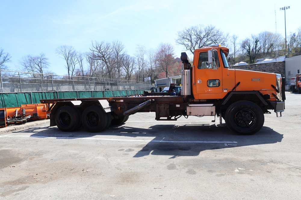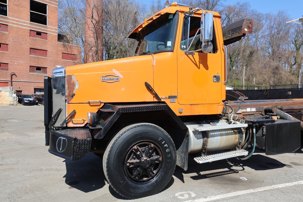 1990 White GMC ACL Roll-off Truck. VIN: 4V2SCBRF0LU506554. Body: Chassis 2D. Engine: DETROIT SERIES 60, 12.7L I6 DI Diesel. Odometer reading: 40638. Galbreath roll-off body. Seller reports: Runs, drives, small air leak/hydraulic leak. Title & key available.