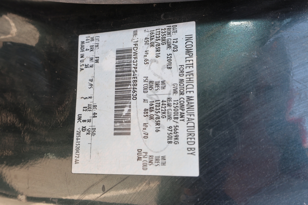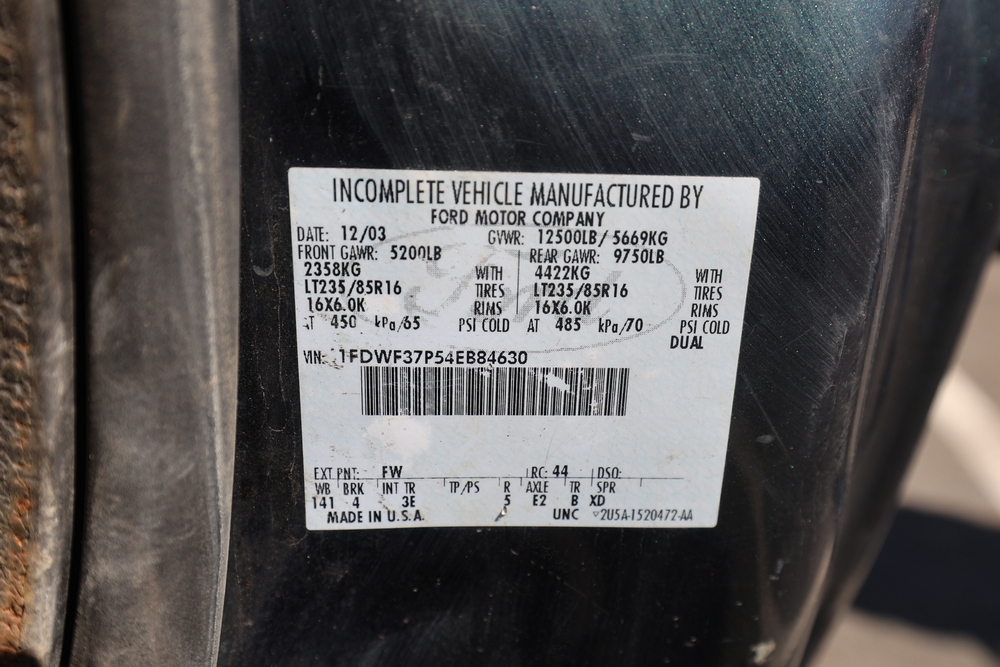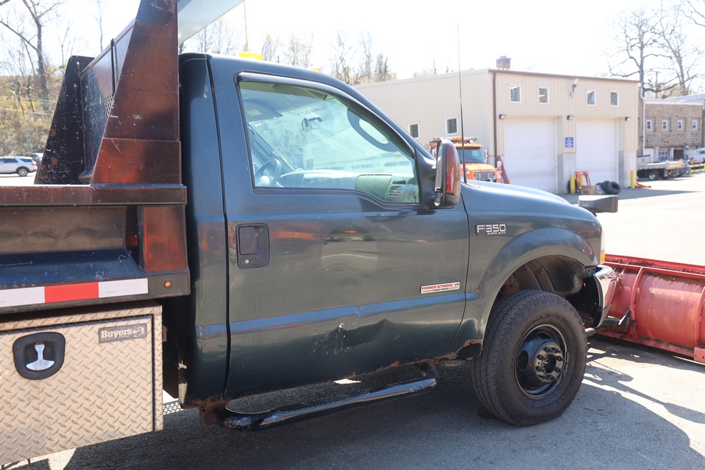 2004 Ford F-350 Super Duty Dump Truck 4X4. VIN: 1FDWF37P54EB84630. Body: Chassis 2D. Engine: Power Stroke 6.0L V8 CRDI Diesel. Odometer reading: 64071. Seller reports: Runs, drives, cab has rot, needs brake caliper/ brakes. Must be towed. Title & key available.