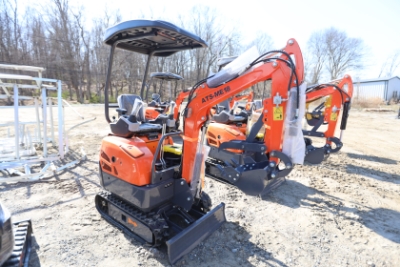 Items include new 2026: ZIG mini skid steer loader, mini excavator 600mm tooth bucket, mini excavator quick connect/wood grabber/rake/ripper tooth; WOLVERINE: mini skid steer stump grinder, rock screening bucket; tree digger attachments; quick coupler; tractor class 1 quick hitch; mini excavator; tow behind log spliiter; 48: excavator flail mower, 60 drum mulcher machine; LANDHONOR: 40 Gallon two-stage truck mounted air compressor, semi-trash water pump; ATS POWER: mini skid steer loader, power, shop press, heavy duty plate compactor, mini excavator; 40' high cube multi-door container; Ecotric 3/8" quick tach cut out mount plate & more. Items are located in Pleasant Valley, NY. Preview is highly recommended.