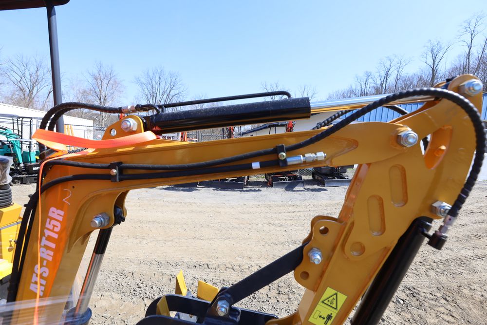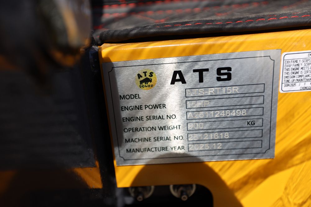 New 2026 ATS Power Mini Excavator, model: ATS-RT15R with pilot controls, dozer blade, bucket, and RATO420 gas engine. Hours reading 2 hours.
