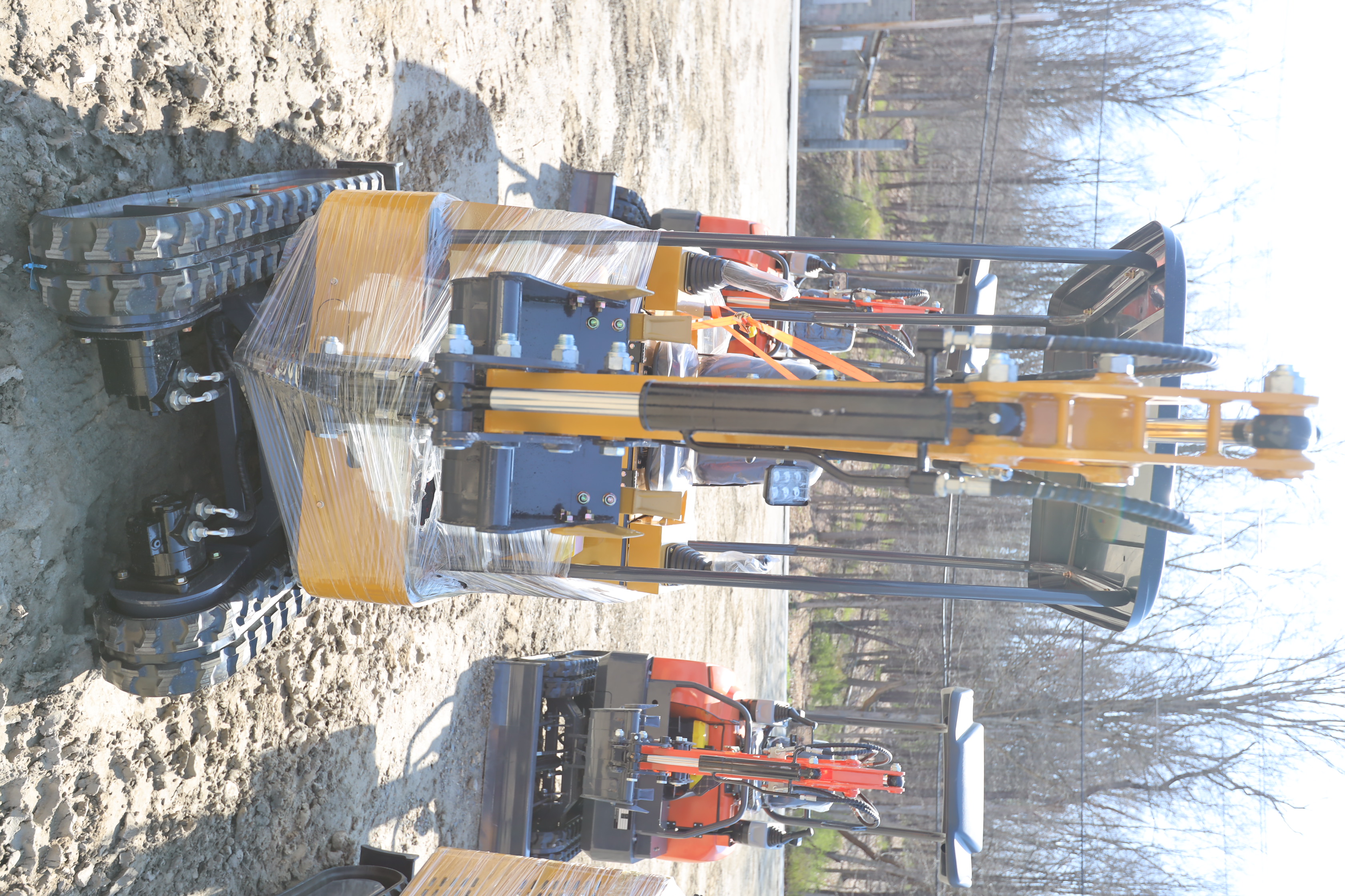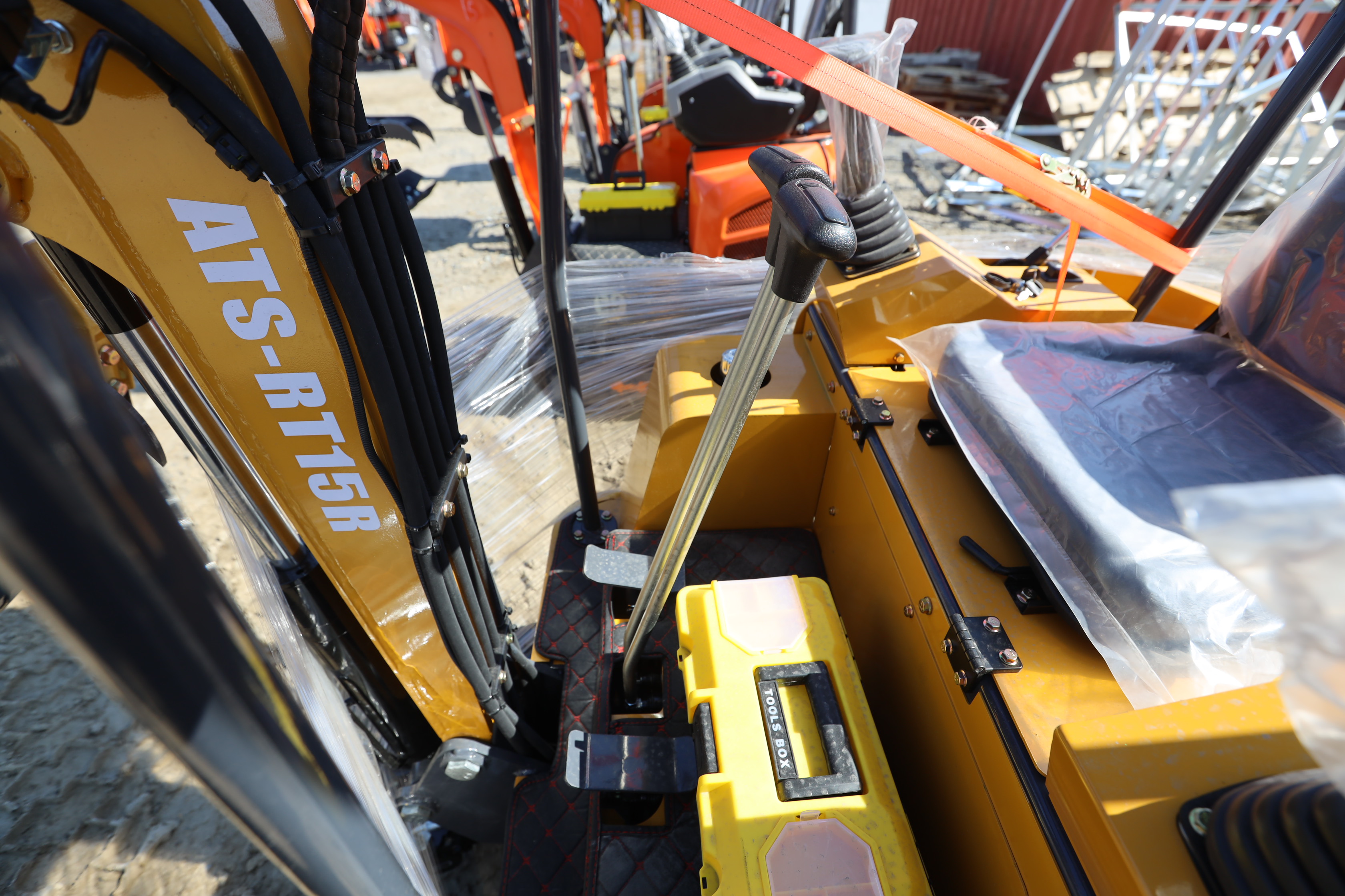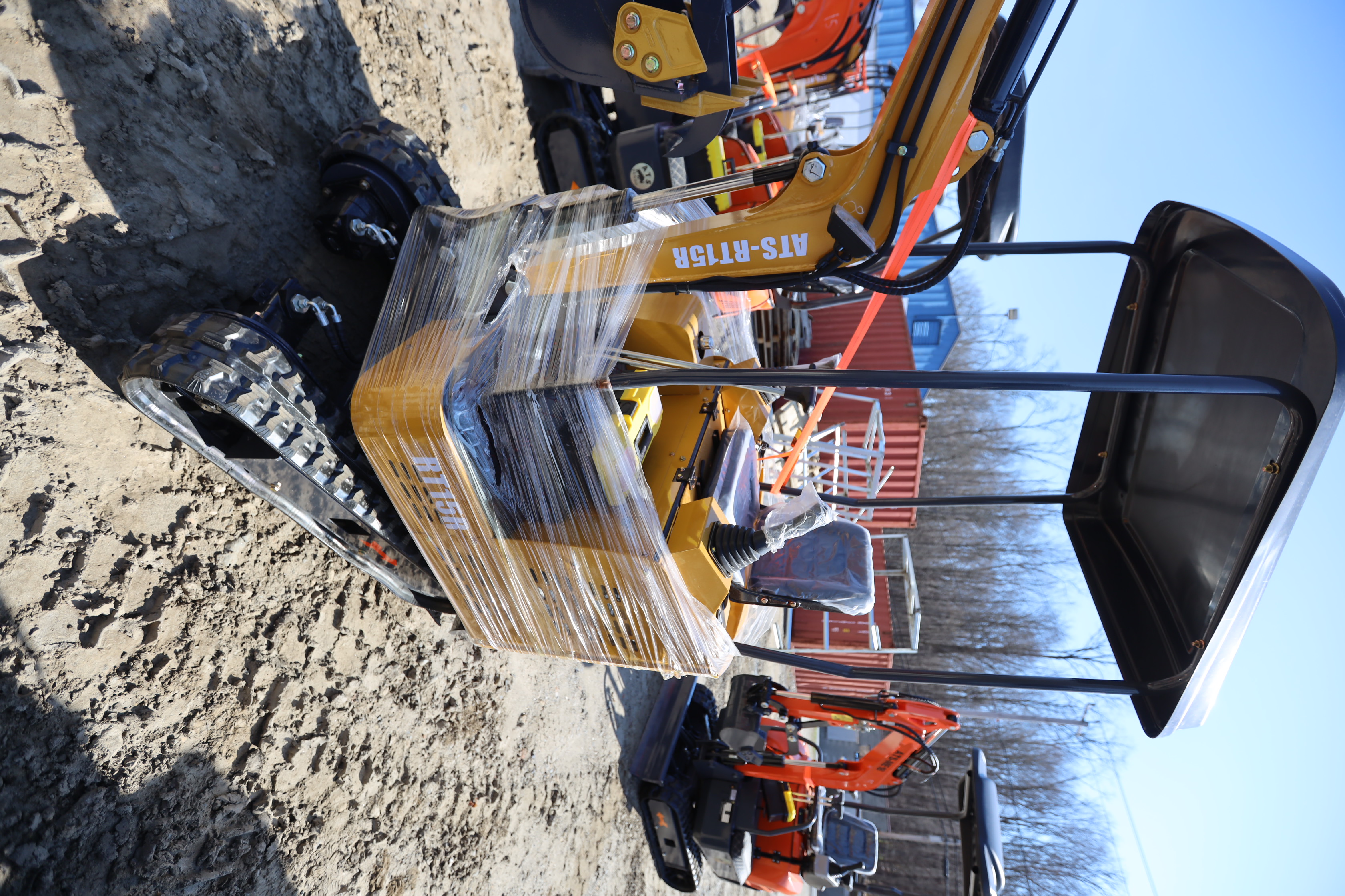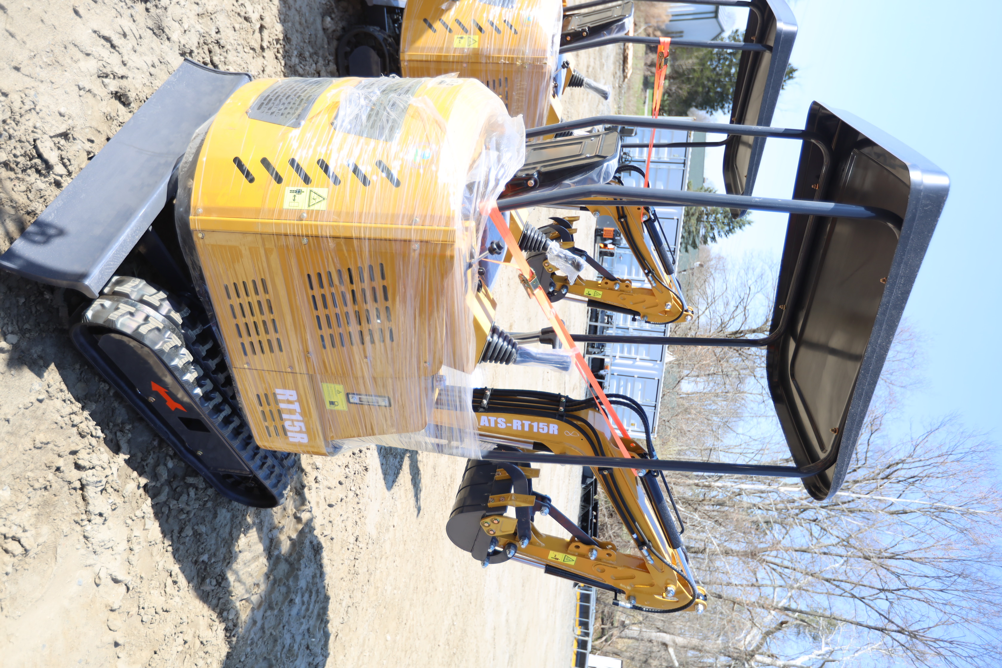 New 2026 ATS Power Mini Excavator, model: ATS-RT15R with pilot controls, dozer blade, bucket, and RATO420 gas engine. Hours reading 1 hour.