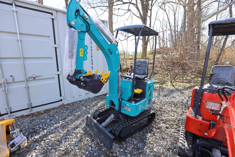 New 2026 ZJG Mini Excavator, model: ZJZ-12 with canopy, dozer blade, bucket, and gas engine. Hours reading less than 1 hour.