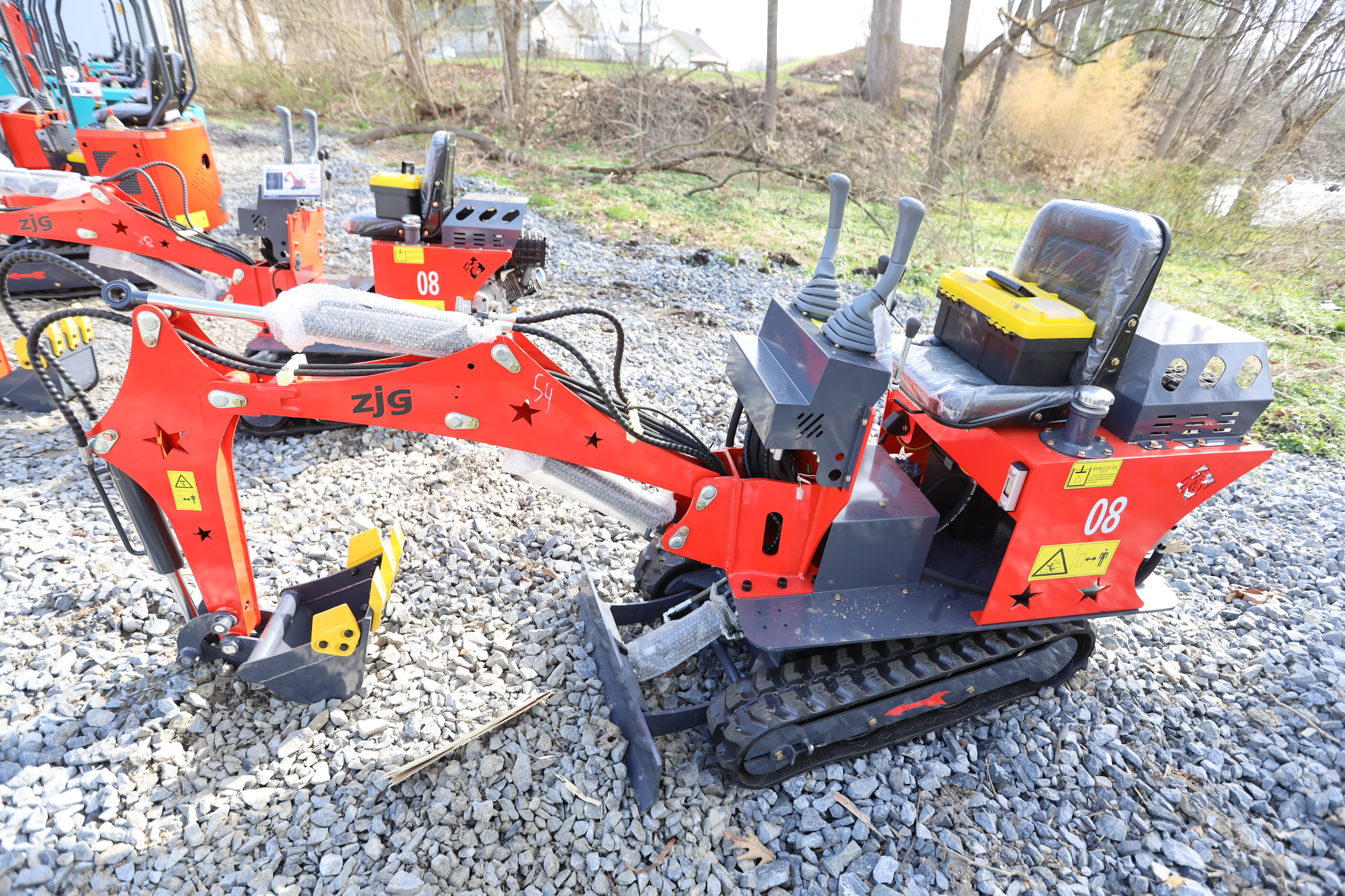 New 2026 ZJG Mini Excavator, model: ZJZ-08 with dozer blade, bucket, and gas engine. Hours reading less than 1 hour.