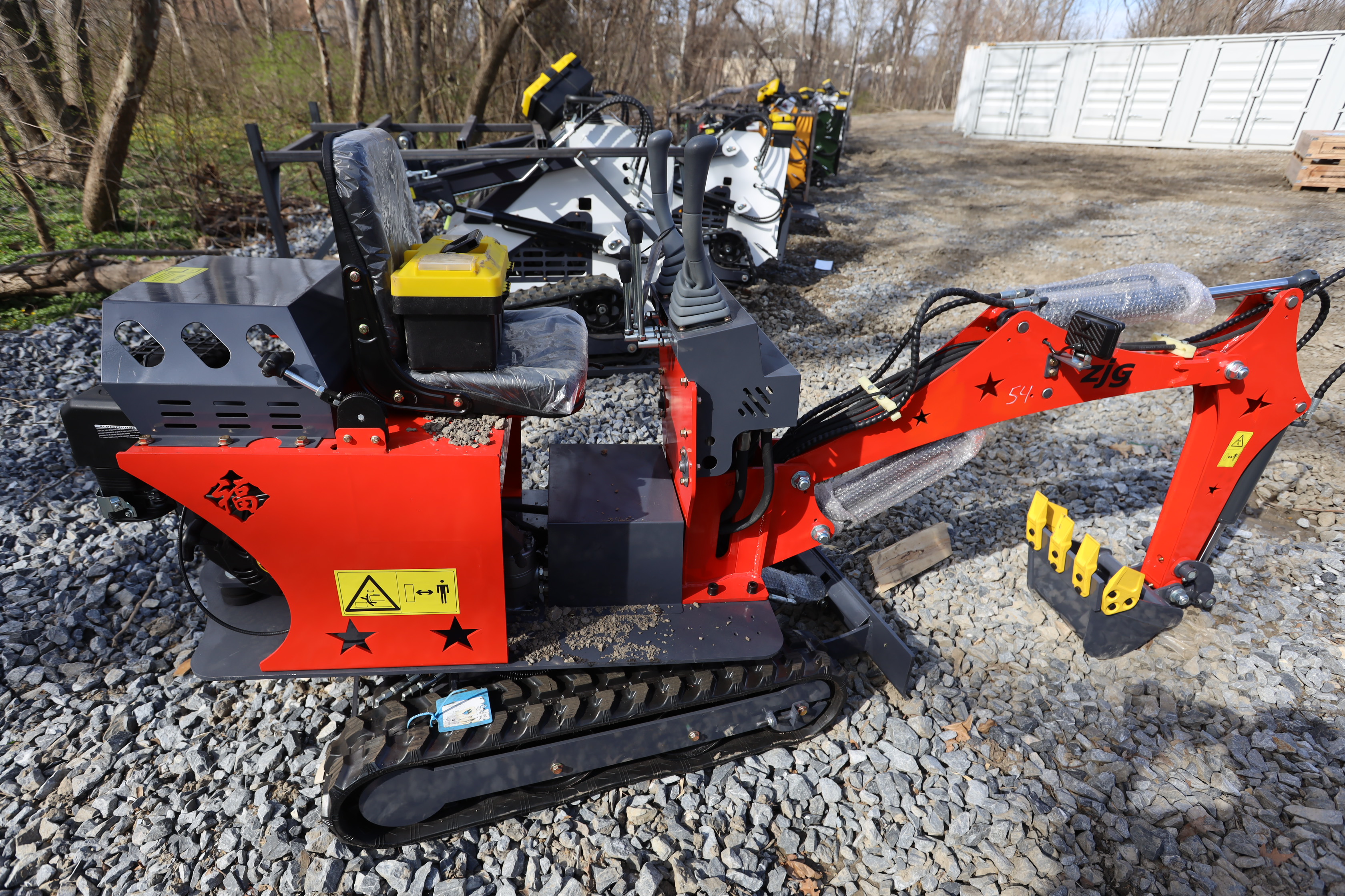 Items include new 2026: ZIG mini skid steer loader, mini excavator 600mm tooth bucket, mini excavator quick connect/wood grabber/rake/ripper tooth; WOLVERINE: mini skid steer stump grinder, rock screening bucket; tree digger attachments; quick coupler; tractor class 1 quick hitch; mini excavator; tow behind log spliiter; 48: excavator flail mower, 60 drum mulcher machine; LANDHONOR: 40 Gallon two-stage truck mounted air compressor, semi-trash water pump; ATS POWER: mini skid steer loader, power, shop press, heavy duty plate compactor, mini excavator; 40' high cube multi-door container; Ecotric 3/8" quick tach cut out mount plate & more. Items are located in Pleasant Valley, NY. Preview is highly recommended.