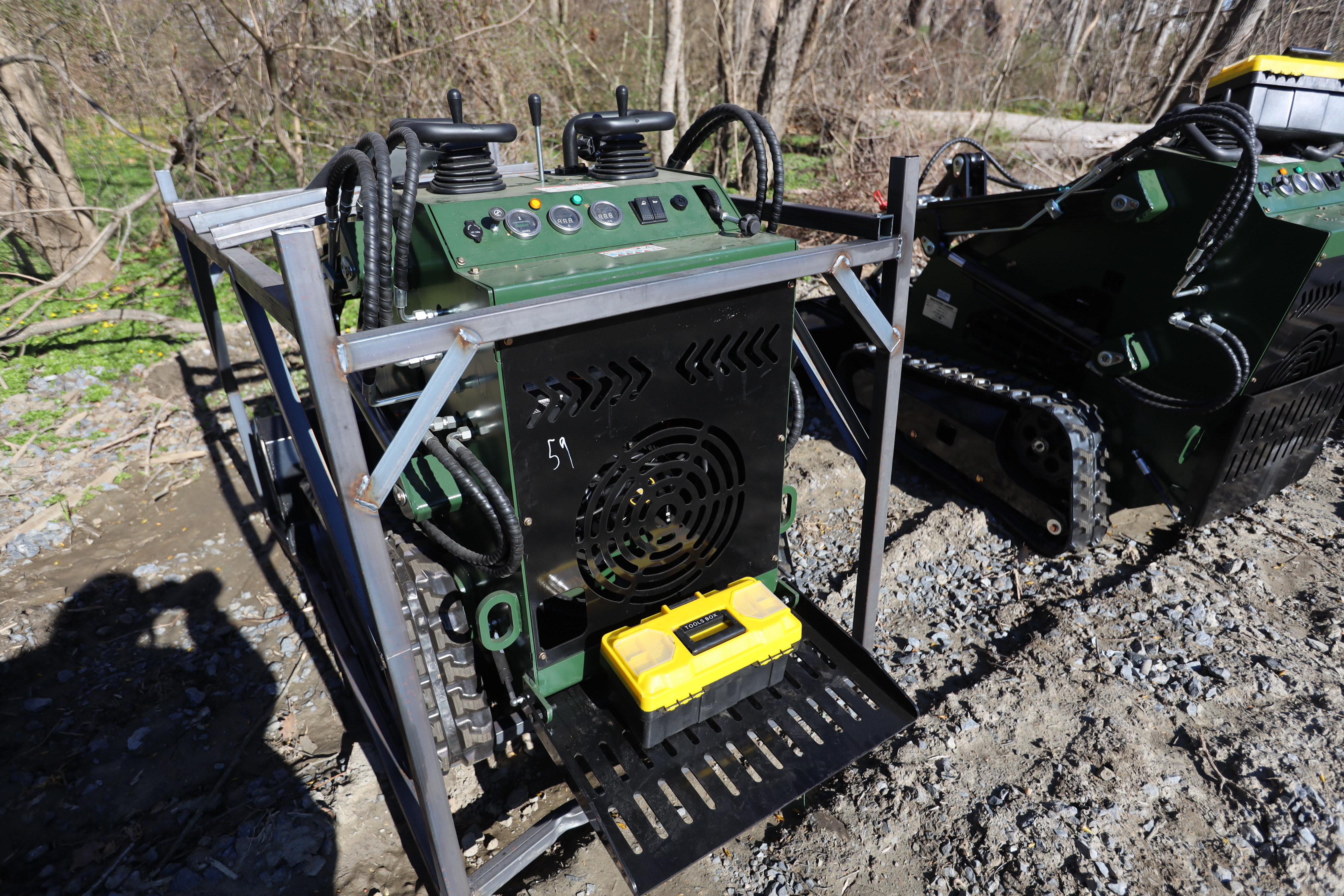 Items include new 2026: ZIG mini skid steer loader, mini excavator 600mm tooth bucket, mini excavator quick connect/wood grabber/rake/ripper tooth; WOLVERINE: mini skid steer stump grinder, rock screening bucket; tree digger attachments; quick coupler; tractor class 1 quick hitch; mini excavator; tow behind log spliiter; 48: excavator flail mower, 60 drum mulcher machine; LANDHONOR: 40 Gallon two-stage truck mounted air compressor, semi-trash water pump; ATS POWER: mini skid steer loader, power, shop press, heavy duty plate compactor, mini excavator; 40' high cube multi-door container; Ecotric 3/8" quick tach cut out mount plate & more. Items are located in Pleasant Valley, NY. Preview is highly recommended.