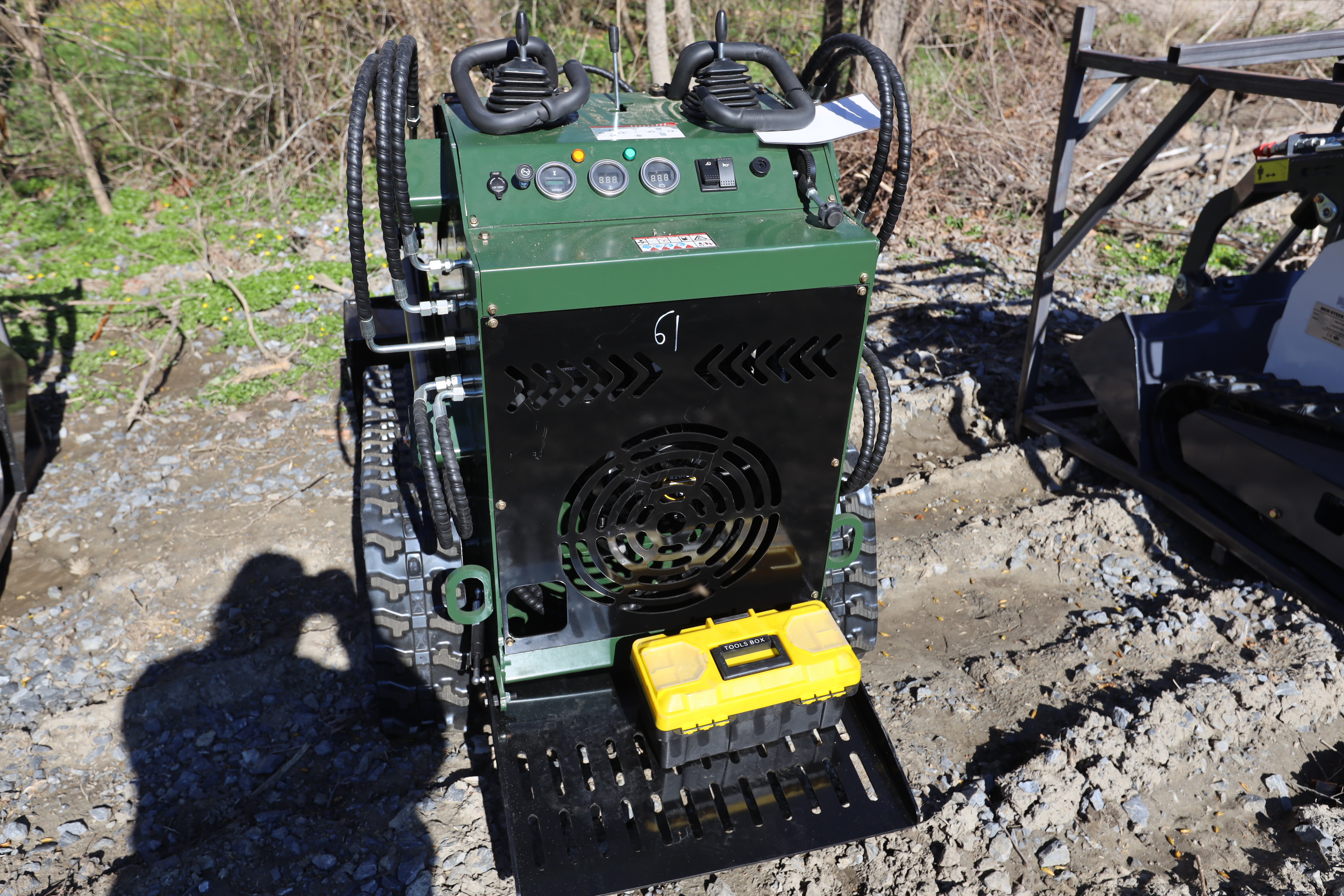 Items include new 2026: ZIG mini skid steer loader, mini excavator 600mm tooth bucket, mini excavator quick connect/wood grabber/rake/ripper tooth; WOLVERINE: mini skid steer stump grinder, rock screening bucket; tree digger attachments; quick coupler; tractor class 1 quick hitch; mini excavator; tow behind log spliiter; 48: excavator flail mower, 60 drum mulcher machine; LANDHONOR: 40 Gallon two-stage truck mounted air compressor, semi-trash water pump; ATS POWER: mini skid steer loader, power, shop press, heavy duty plate compactor, mini excavator; 40' high cube multi-door container; Ecotric 3/8" quick tach cut out mount plate & more. Items are located in Pleasant Valley, NY. Preview is highly recommended.