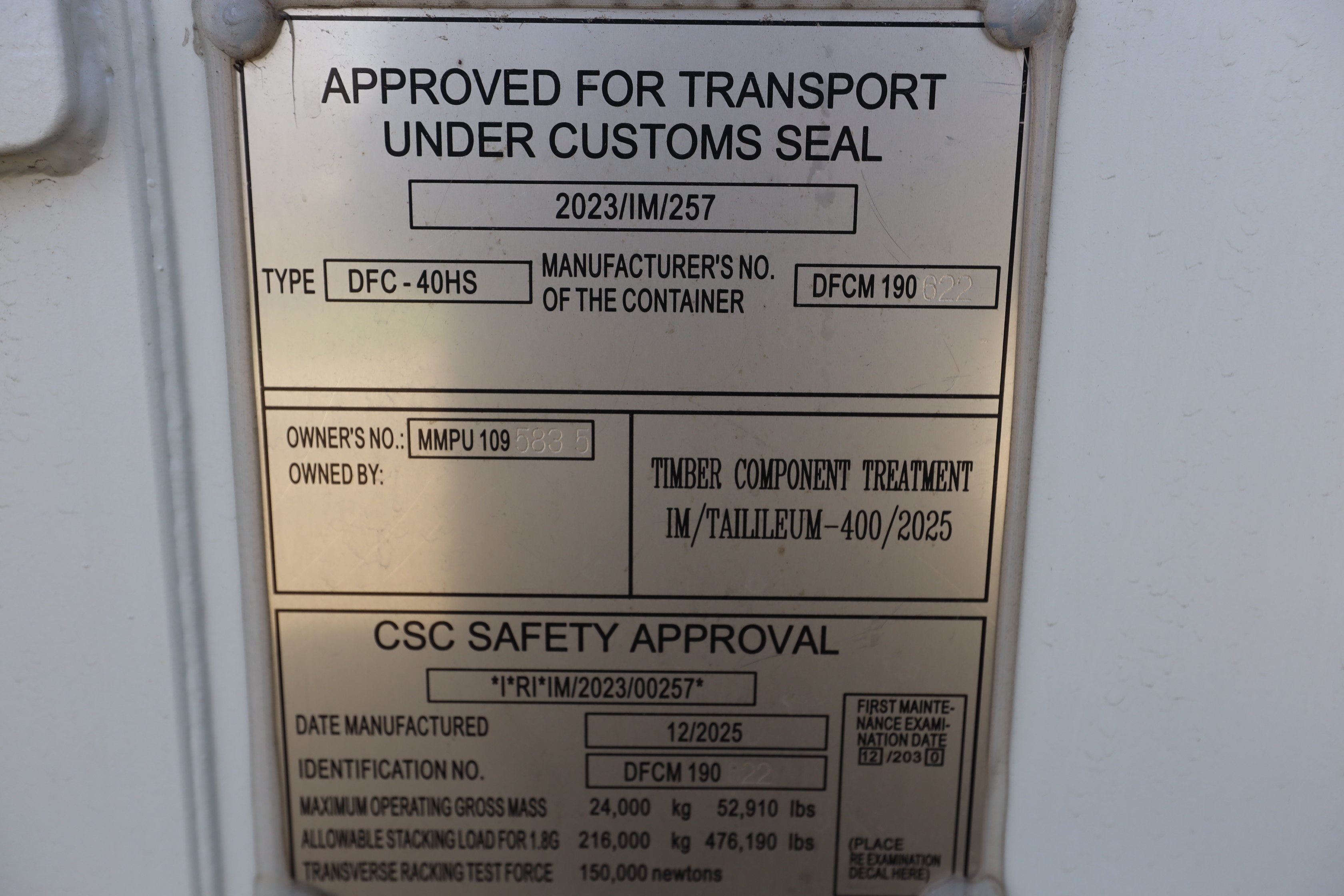 New 40' High cube multi-door container, four side doors, one end door. Container #MMPU1095835.