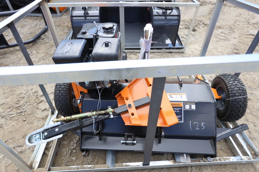 Items include new 2026: ZIG mini skid steer loader, mini excavator 600mm tooth bucket, mini excavator quick connect/wood grabber/rake/ripper tooth; WOLVERINE: mini skid steer stump grinder, rock screening bucket; tree digger attachments; quick coupler; tractor class 1 quick hitch; mini excavator; tow behind log spliiter; 48: excavator flail mower, 60 drum mulcher machine; LANDHONOR: 40 Gallon two-stage truck mounted air compressor, semi-trash water pump; ATS POWER: mini skid steer loader, power, shop press, heavy duty plate compactor, mini excavator; 40' high cube multi-door container; Ecotric 3/8" quick tach cut out mount plate & more. Items are located in Pleasant Valley, NY. Preview is highly recommended.