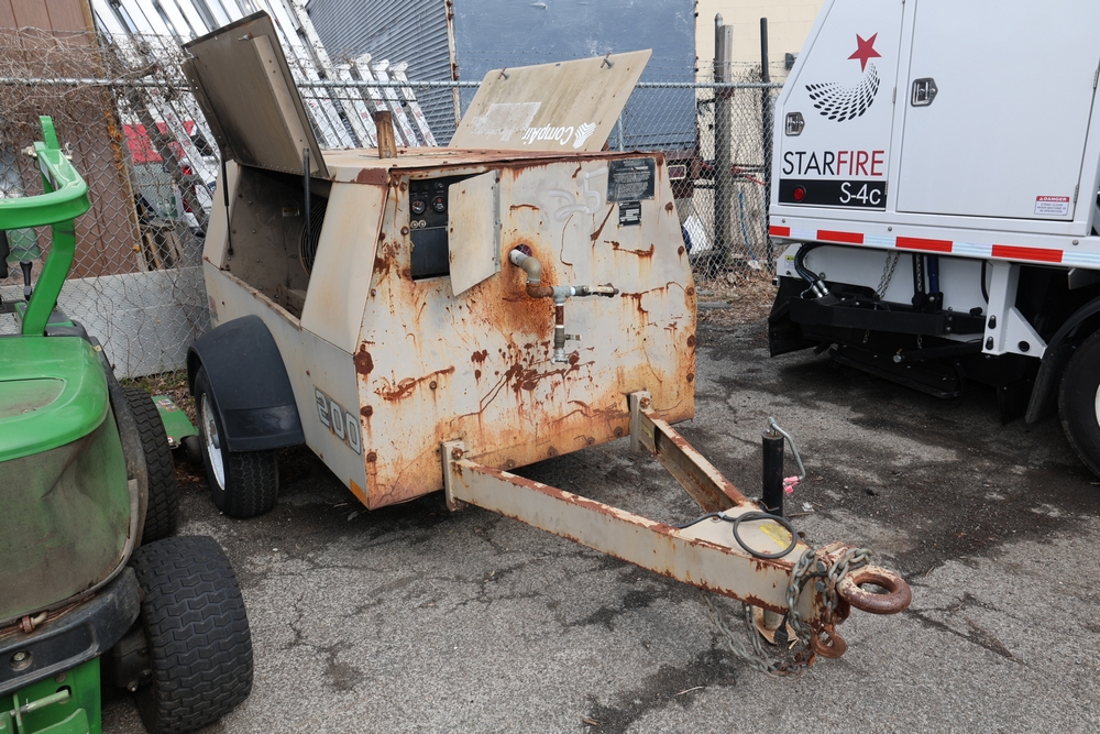 LEROI PORTABLE GAS AIR COMPRESSOR. VIN: 3535X215. Odometer reading: 1040 Hours. Seller reports: does not run/work. 4.5 L / 4 Cylinders John Deere Diesel engine. Weak/Dead 12 volt battery. missing parts. Sold as is Fleet #: 07286.