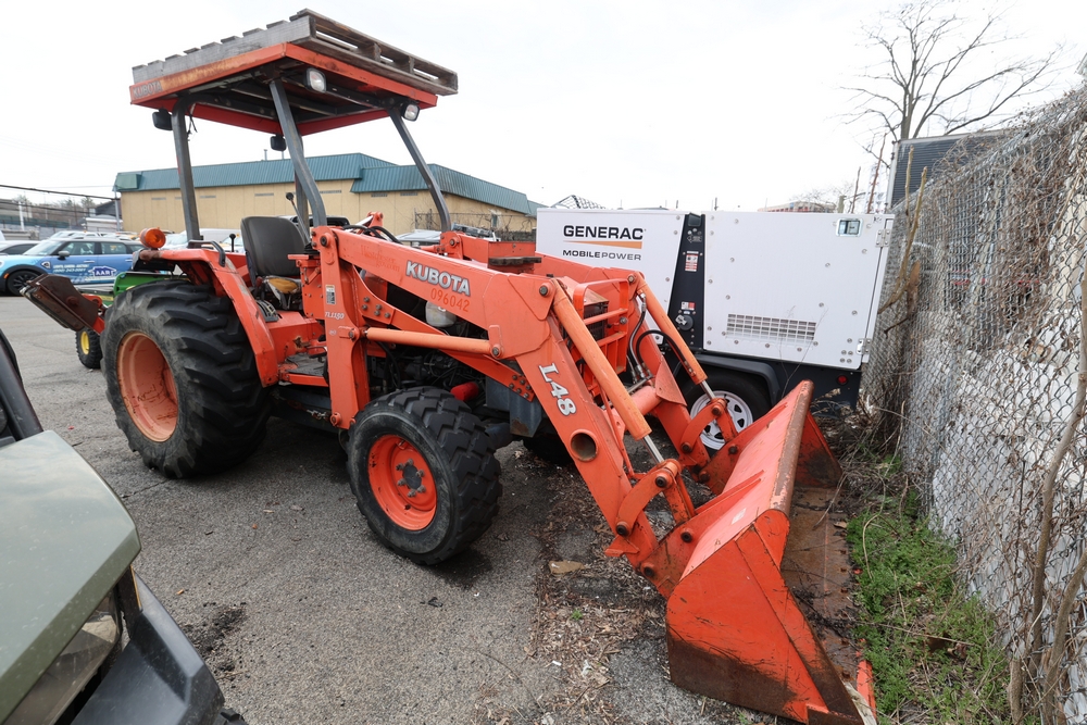 KUBOTA TRACTOR L48 W/BACKHOE LOADER. VIN: 62294. Odometer reading: 1448 hours. Seller reports: ENGINE N/G. KNOCKING AND SMOKING. OIL IN EXHAUST AND PRESSURE IN RADIATOR. Fleet #: 096042.