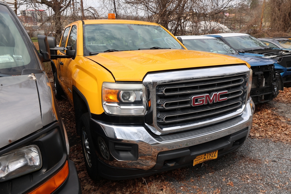 2015 GMC Sienna 2500 cab SRW Pickup Truck. VIN: 1GT12XEG7FF141425. Odometer reading: 81744. Seller reports: Over 13,750 engine hours. Engine oil pressure low. Needs front tires, front ball joints & alignment. Parts missing. CEL & TPMS Lights on. Weak/dead 12 volt battery. Engine: 6.0 L / V8 . Key and Title available. Fleet #: 613144.